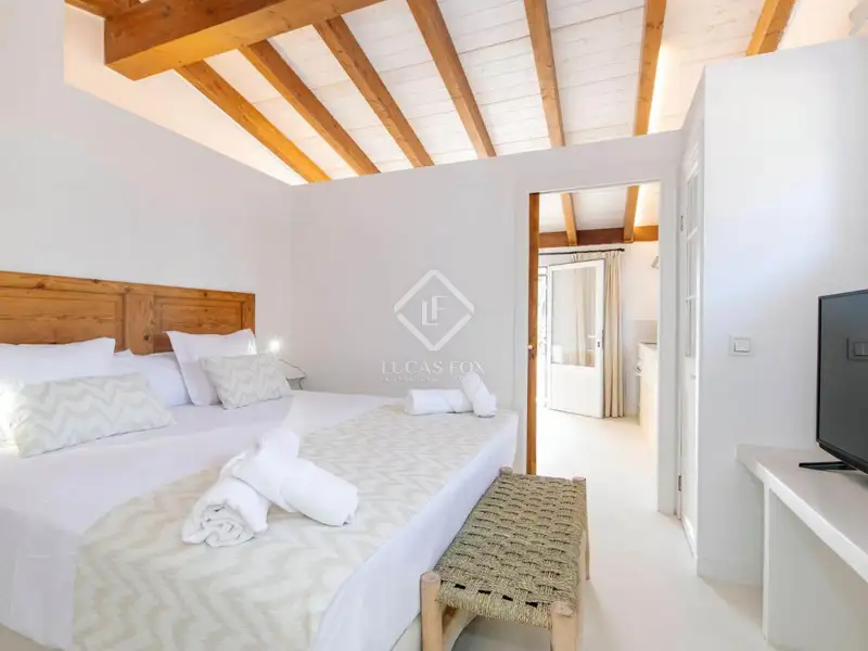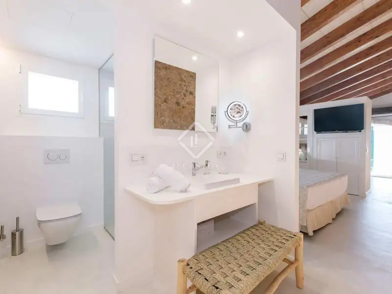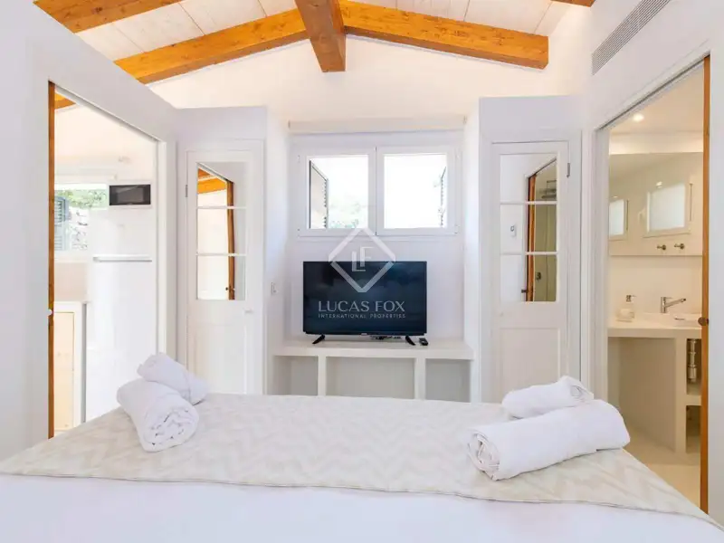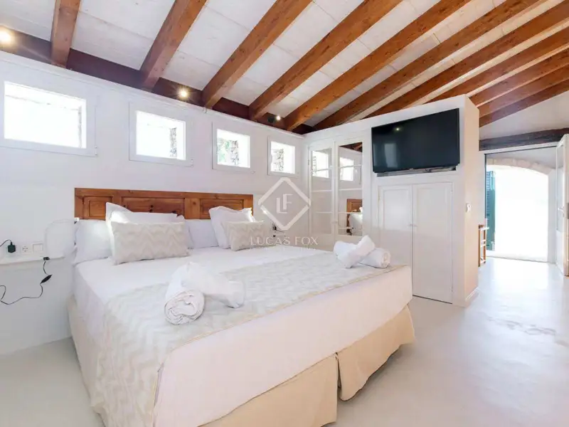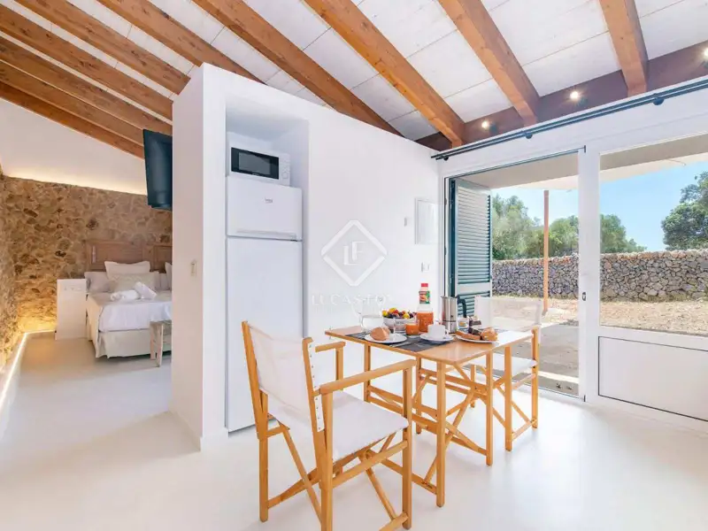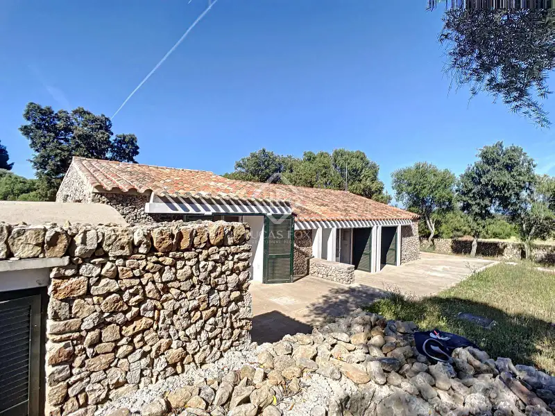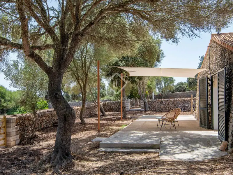 This modern rural house of 150 m² built on a plot of 499,494 m² is located in the countryside area that belongs to the town of Mercadal, located in the middle of the island. Its privileged location allows access to the famous beaches of the north of the island on foot or on horseback, if you do not want to take the car. It connects with the famous Camí de Cavalls and thanks to its 50 hectares of its own land, it offers the possibility of having horses and thus being able to go on excursions to the north of the island.
