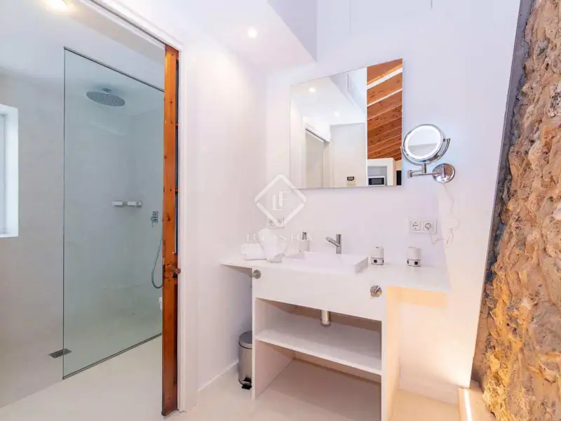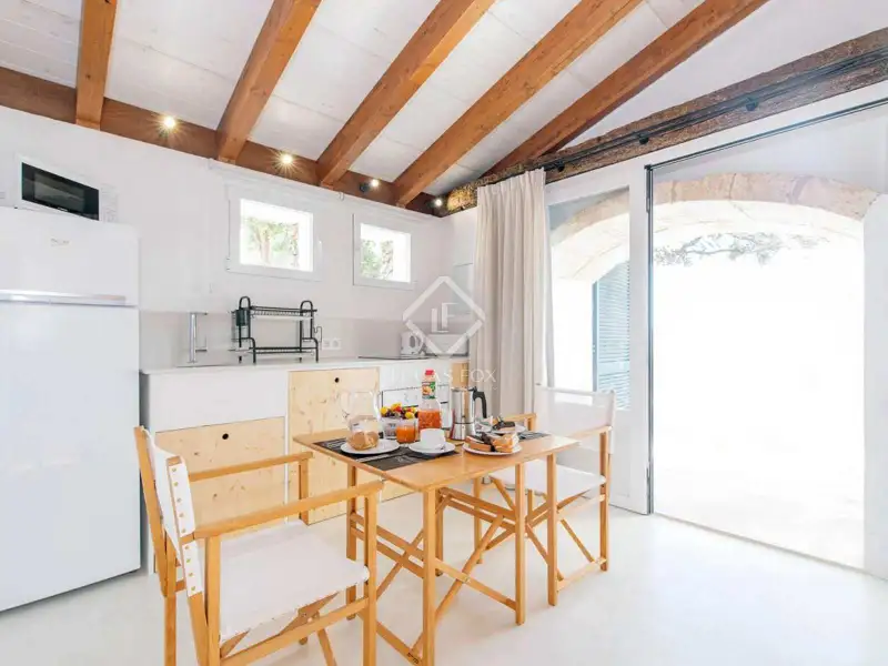 It is completely renovated, both at a constructive level and in the interiors. Top quality materials have been used, all the ceilings have been restored, both beams and tiles, and the insulation has been improved. All the exposed stone has been restored, and the finishes of both the floor and the built-in furniture have been made with microcement.