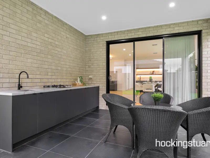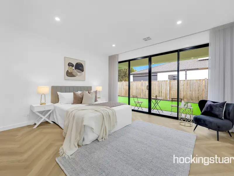 Step into a world of timeless elegance and architectural brilliance with this luxurious single-level masterpiece. Meticulously crafted to impress, this home blends sophisticated design with functional comfort, offering premium finishes and thoughtfully curated interiors throughout. From the moment you arrive, the striking custom façade and gallery-inspired entrance hall set the tone for what’s to come—an awe-inspiring living experience designed for those who appreciate style, space, and serenity. Luxury Meets Lifestyle The light-filled front lounge with soaring ceilings and ambient LED feature lighting sets a mood more indulgent than a five-star retreat. The central living and dining area is the heart of the home—anchored by a designer fireplace and extending seamlessly to your outdoor oasis. The gourmet kitchen is a showstopper—straight out of a magazine. It boasts a large stone island bench, premium 900mm appliances, and an expansive butler’s pantry—perfect for entertainers. The adjoining built-in bar area and outdoor kitchen in the alfresco provide the ultimate setup for effortless gatherings. Outdoor Entertaining, Redefined Entertain with ease in your fully equipped alfresco kitchen overlooking a low-maintenance, beautifully landscaped backyard with lush artificial grass—perfect for hosting family BBQs or weekend celebrations. The exposed aggregate surfaces and fully fenced surrounds make this space as practical as it is stunning. Comfort for the Whole Family Enjoy the privacy and comfort of four oversized bedrooms—each with its own bathroom and walk-in robe. Two luxurious master suites open directly to the alfresco area—an ideal spot for your morning coffee or evening unwind. All bathrooms are fully tiled to the ceiling and feature elegant double vanities and high-end tapware. ________________________________________ Property Highlights: •Custom architect-designed façade •Park-facing location •Three master bedrooms + 4th bedroom with ensuite •Spacious open-plan living with feature fireplace •Gourmet kitchen with stone island, 900mm appliances & butler’s pantry •Built-in bar and second kitchen in the alfresco •Refrigerated heating and cooling •Designer bathrooms with LED mirrors & double vanities •Backlit LED lighting and sheer curtains throughout •Herringbone parquet flooring •High ceilings, high internal doors & square-set cornices •Fully landscaped front and backyard with exposed aggregate & artificial turf •Alarm system & concrete perimeter pathing •Upgraded laundry with backyard access ________________________________________ Prime Location: Schools (walking distance): •Holy Cross Catholic Primary & Secondary School •Gaayip-Yagila Primary School Shopping: •Merrifield City (Coles, Aldi), local cafes, bakeries, and convenience stores Recreation: •Foundation Park Playground, Pinnacle Park, Merrifield Recreation Reserve •Mickleham North Community Centre Commute: •Easy Hume Freeway access, approx. 30 minutes to Melbourne CBD ________________________________________ ???? Inspect Today Samaira – 0416 382 477 Love Sharma – 0430 534 802