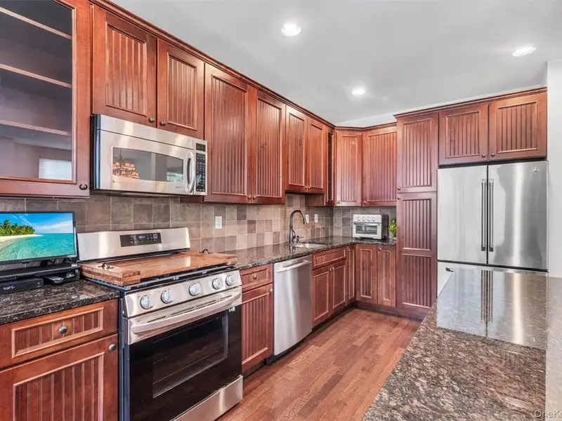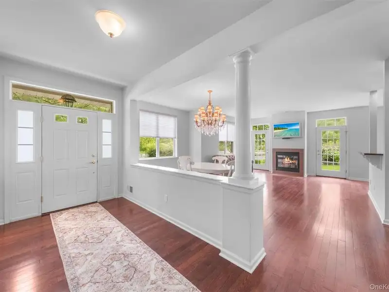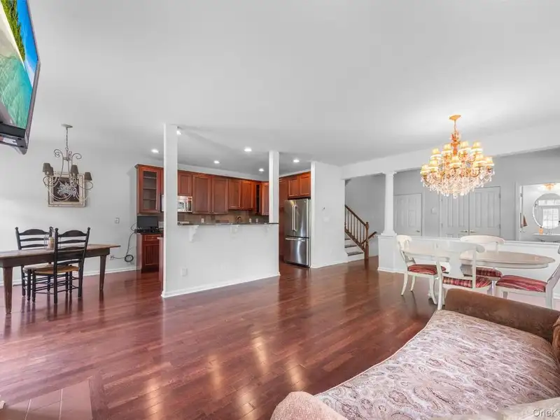 Escape the hustle and bustle and enjoy a luxury lifestyle in the Hudson Valley! 70 miles from NYC so still easily accessible! The largest end unit in the premier luxury, maintenance free gated community of Fairways of Wallkill. The original owners included every upgrade available when choosing options and now it can be yours! Starting with the privacy, lush landscaping and common area, this was an premium lot upgrade. This Beaumont model offers over 3000 sq feet and four levels of lavish living. Inside you'll immediately see the open space, columns, custom molding and rich cherry stained floors. The formal dining space with a chandelier and a living room with a wall of windows and a gas fireplace. The chefs kitchen is dressed with stainless steel appliances, cherry cabinets with showcase glass, a tiered breakfast bar, tiled backsplash and a beautiful farmers sink. Upstairs leads to the primary suite with two walk in closets, a primary bath with a two person shower, and a jetted tub. Two additional guest bedrooms, a full guest bath, and laundry complete the second floor. Now up to the third level which has a huge loft, an ideal flex space. Make it a home office, gym, or a private space for reading or yoga. There are two large (very large) closets for storage. The lower level has a full bath with a shower and is a great blank space. The owners had it as a theater room and you will see the wiring for the projector. Some additional finer points are 4 zone heat and 4 zone central air, reasonable taxes for a home this size, a two car garage with storage above, Hunter Douglas blinds, hardwood floors throughout the three floors, tons and tons of windows, a newer ac condenser and hot water heater. This gated community offers a gorgeous club house, with a gym, an outdoor pool and spa and the convenience of West Hills Golf Club right next door. Located 1/4 mile from Garnett Medical Center. The shopping mecca of Route 211, Route 17, and I84 are less than 5 miles. Visit nearby Legoland, shop at Woodbury Common, see a concert at Bethel Woods, or have a night out at Resorts International Casino. You truly can have it all here a Fairways of Wallkill! Schedule your tour now!