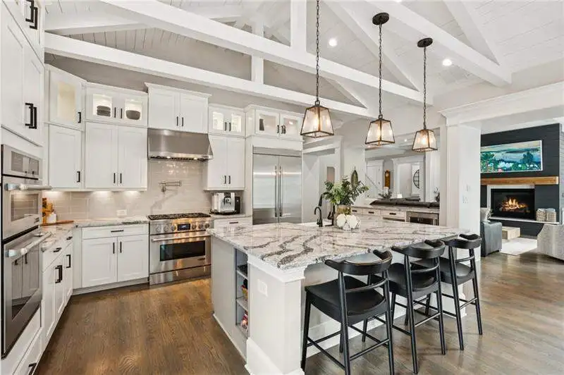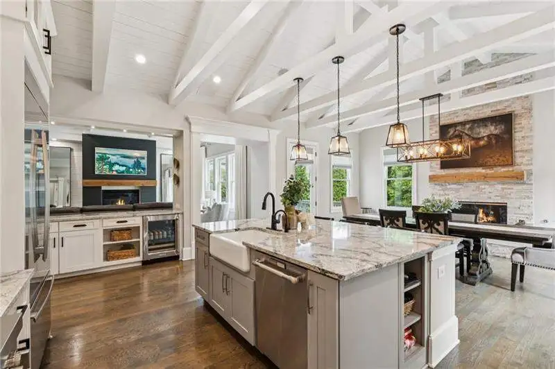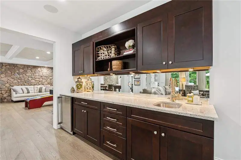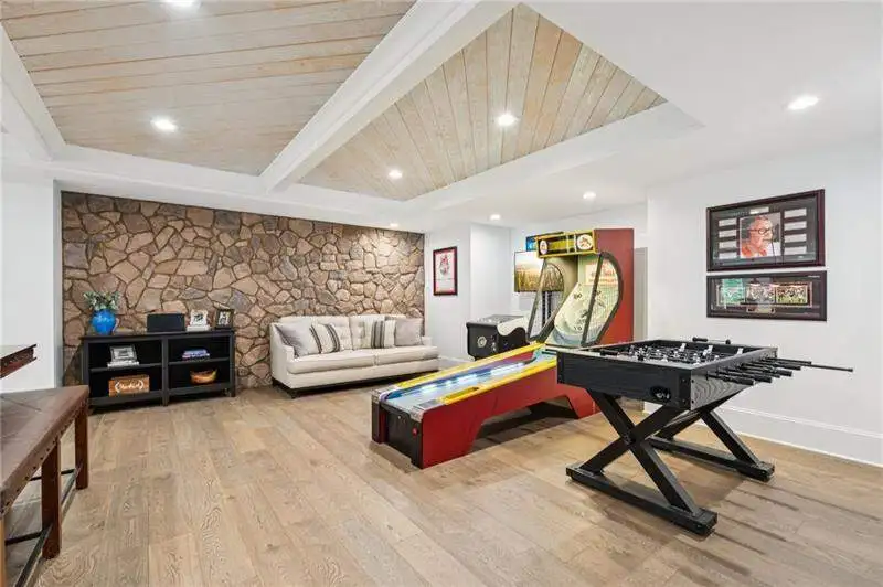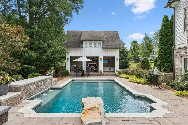 Welcome to this extraordinary former model home in The Grove, one of Milton's most coveted communities, known for its rolling landscapes, peaceful setting, and proximity to award-winning schools, including Birmingham Falls Elementary, Northwestern Middle, and Milton High. This is an incredibly rare opportunity featuring a pool, a four-car garage (including a detached two-car garage with a full living suite above), a detached pool house, and a beautifully fenced-in property. This residence effortlessly blends sophisticated design with everyday comfort, offering up to seven bedrooms, six and a half bathrooms, and countless high-end details throughout. The detached two-car carriage house includes a complete living suite with a full kitchen, washer and dryer, and a full bathroom perfect for guests, a private office, or additional living space. A wide rocking chair front porch leads to a striking custom iron front door and into a grand two-story foyer that sets the tone for the home's elegance. The open floor plan is anchored by a spacious great room with coffered ceilings, flowing seamlessly into a chef's kitchen complete with a six-burner range, pot filler, oversized island, ice maker, butler's pantry, and an expansive walk-in pantry. Just off the kitchen, a vaulted keeping room with a cozy fireplace creates a warm and inviting atmosphere, ideal for both entertaining and quiet evenings at home. The main level includes a beautifully designed mudroom with abundant built-ins, a glass and iron accent door, built-in washer and dryer, and an LG Styler steam unit an unexpected luxury that adds ease to daily living. The primary suite is a true retreat, featuring tray ceilings, a large custom walk-in closet, and a spa-like bathroom that includes a freestanding soaking tub, dual vanities, and an expansive double shower with high-end finishes throughout. Upstairs, four generously sized bedrooms are accompanied by three full bathrooms, offering comfort and privacy for family or guests. The bonus space over the family room can be used as an additional bedroom suite, as a home office or an additional family room, providing valuable flexibility for a variety of needs. The finished terrace level expands the home's livable space and offers exceptional versatility, with a private bedroom and full bathroom, a fully equipped second kitchen with a large island, wine fridge, microwave, and ice machine, as well as dedicated areas for a home gym, game room, and media room. Whether entertaining large groups or accommodating extended family, this level is designed to adapt beautifully to any lifestyle. Set on a beautifully manicured one-acre lot, the outdoor living spaces are equally impressive. The backyard features a saltwater pool and a resort-style pool house with vaulted ceilings, exposed wood beams, a fireplace, and a comfortable lounge area. A flat, expansive front yard with a circular driveway and a fully fenced backyard complete the setting, offering both space and privacy in a peaceful residential environment. Ideally located just minutes from Scottsdale Farms, The Union Restaurant, Seven Acre BarNGrill, and Downtown Crabapple with easy access to Downtown Alpharetta, Avalon, and GA 400 this home offers the perfect balance of tranquility and convenience. Timeless style, impeccable craftsmanship, and luxurious amenities come together in this one-of-a-kind Milton residence, where everyday life feels like a retreat. Welcome home.