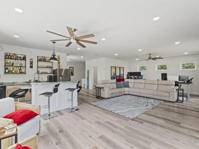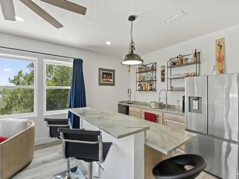 - Third-floor entertaining area with wet bar
