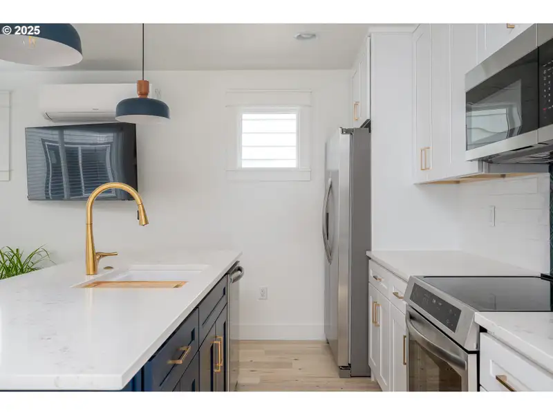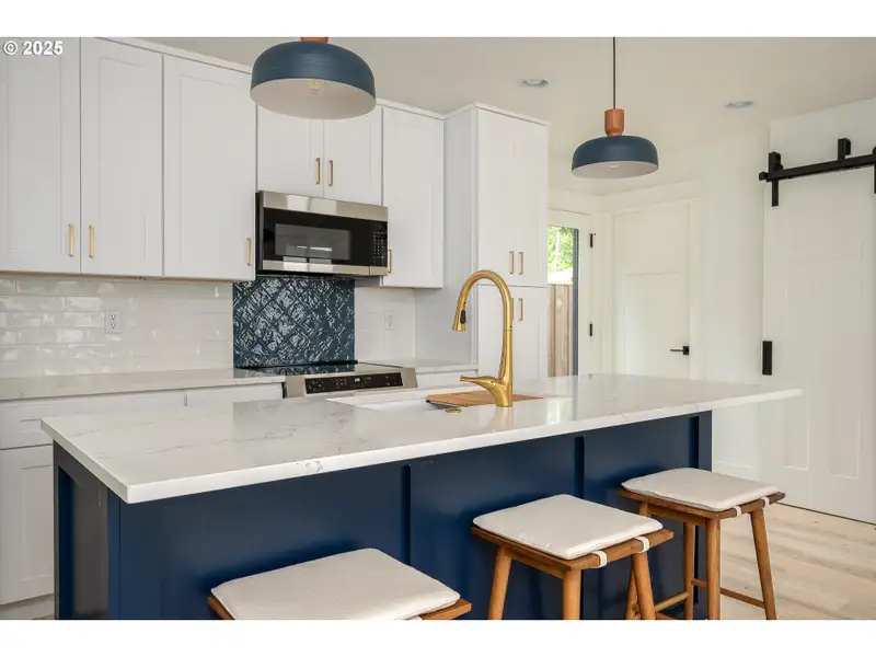 - Modern blue and white cabinetry