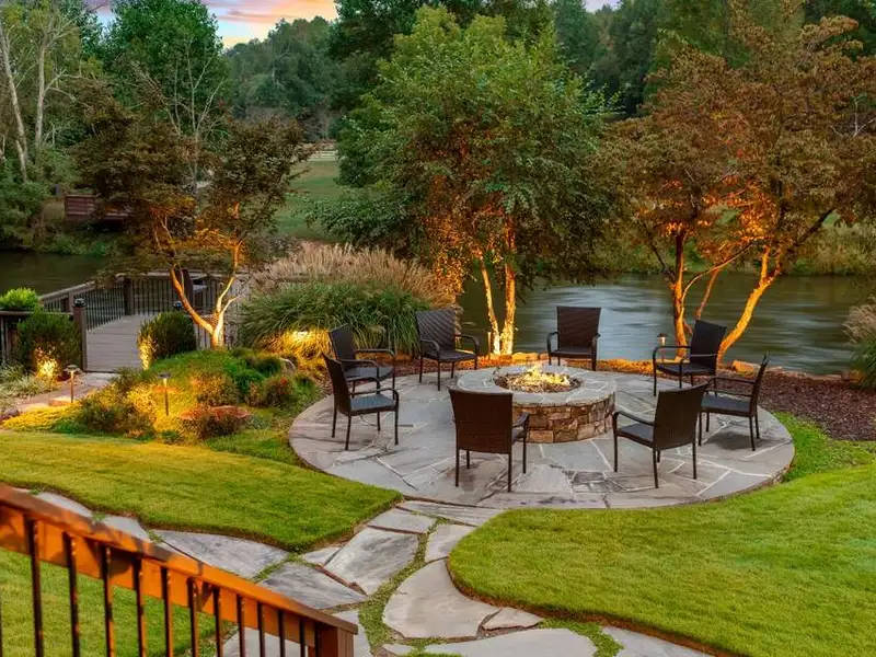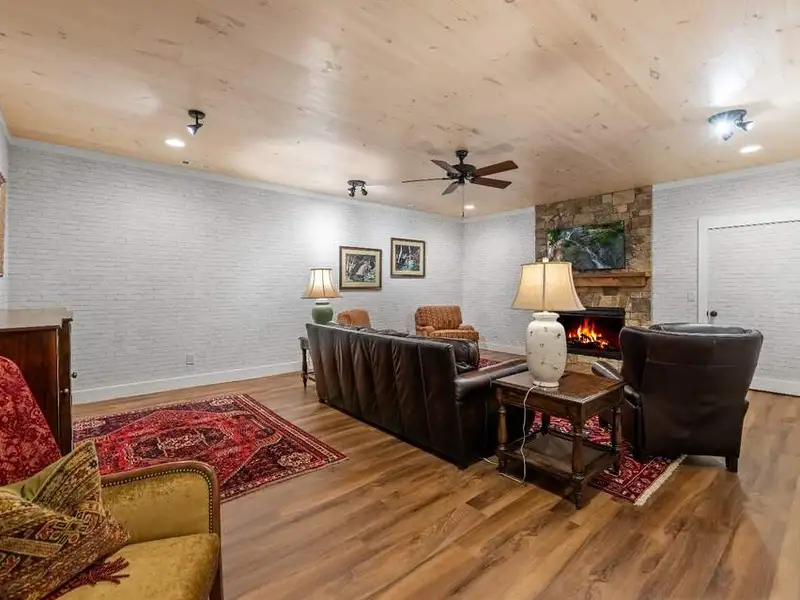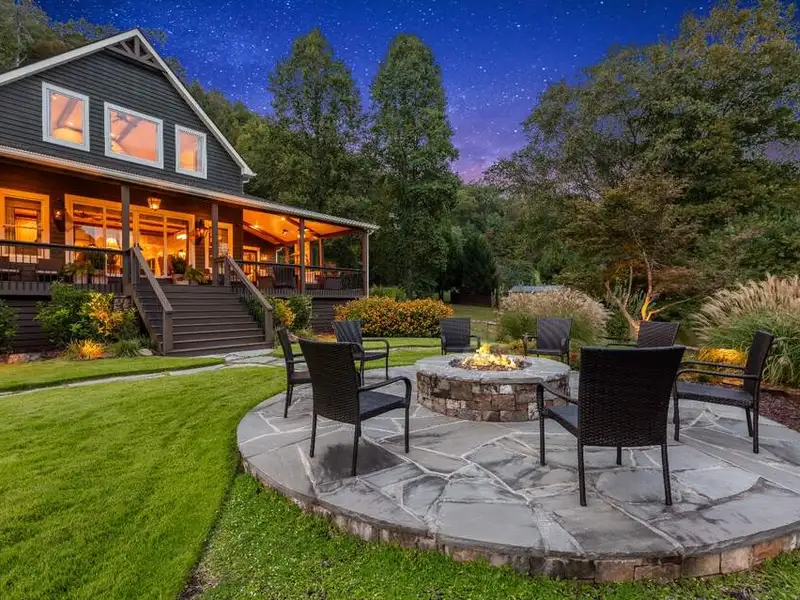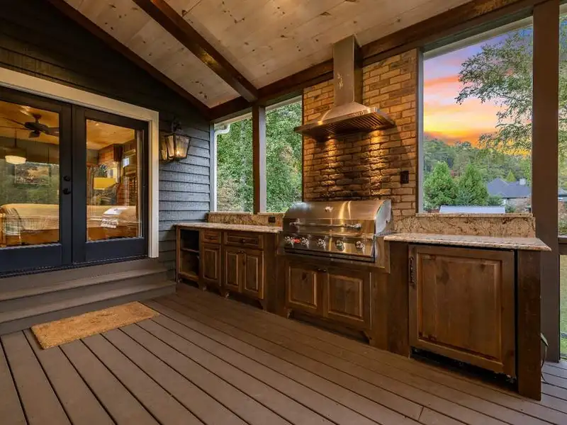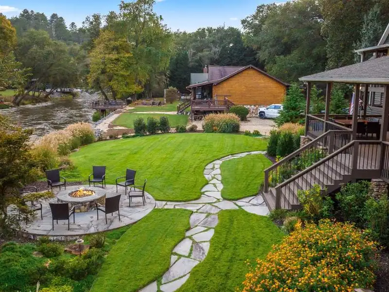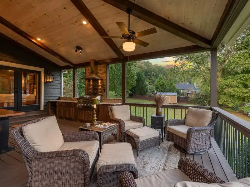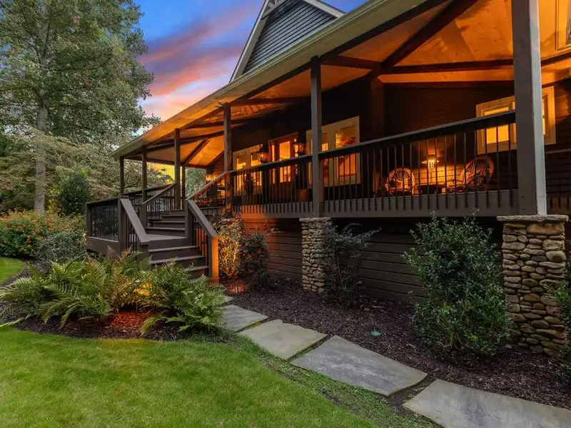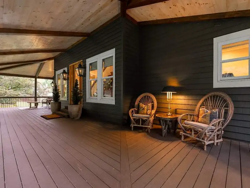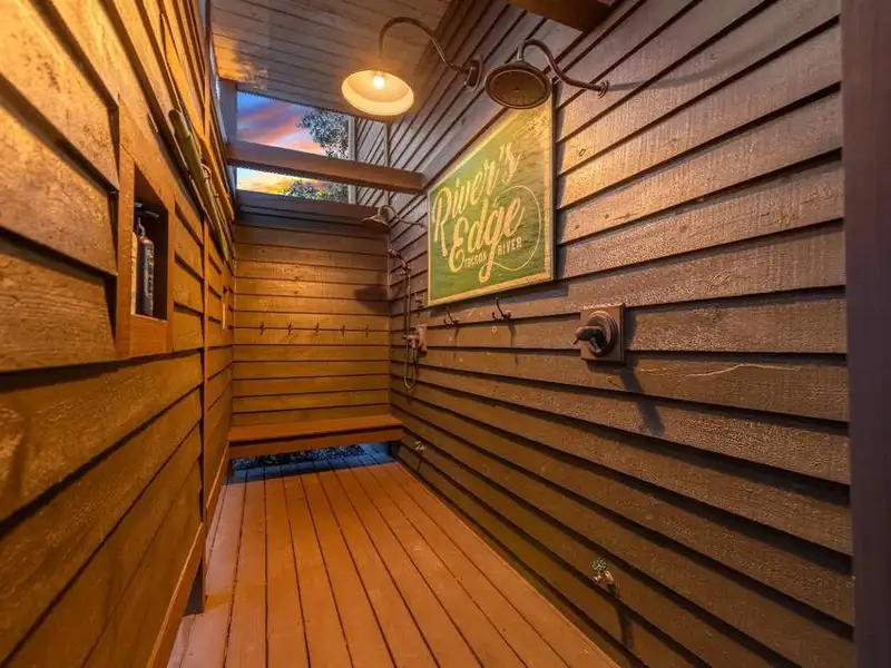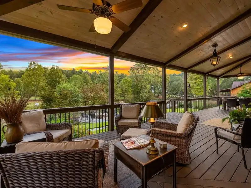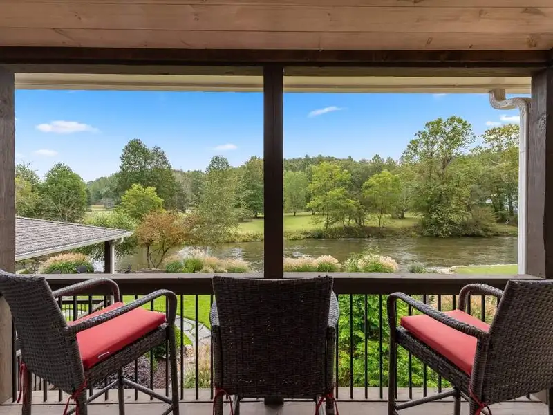 - Large covered porches and riverfront deck