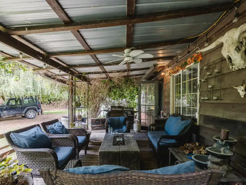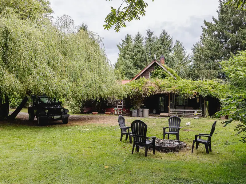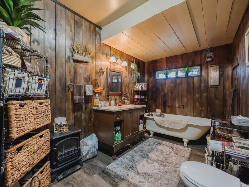 - Half-acre lot with rustic cabin vibe