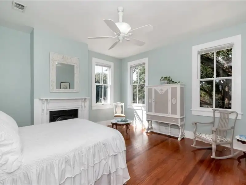 ***OPEN HOUSE, SUN., DEC., 7TH, 12-2.***Enjoy living in the heart of the Historic Oakleigh Garden District, one of Mobiles most charming and walkable neighborhoods. This beautiful home offers the perfect blend of historic character and modern convenience. Let's Talk about this home!!! Mrs. Meticulous lives here. It's obvious!!! To begin with, the L-shaped front porch welcomes you into the foyer with its cascading staircase. Of course, this home has High ceilings, beautiful Hardwood floors & exquisite Trim & Moldings & an abundance of natural light.The Formal Living room with a working gas log fireplace, (one of five total fireplaces in the homefour of which are decorative) A gracious formal Dining Room with built-in cabinetry is perfect for hosting dinner parties or family gatherings. The Kitchen is a showstopper, featuring a striking marble-topped island that serves as the perfect gathering place, along with a cozy dining area. Lighted glass cabinets, abundant storage with drawers and pull-outs, a gas stove (approx. 12 years old), new dishwasher (2024), and a convenient pot filler make this kitchen both beautiful and functional. From the kitchen, doors open onto a large composite deck that overlooks a gorgeous backyardideal for entertaining, relaxing, or enjoying the peaceful surroundings. Having 4 bedrooms (2 up & 2 Down) is the most ideal bedroom set up of all. There can even be 2 Primary bedrooms, if needed. Downstairs even has an office nook. Besides the primary Bedroom & en-suite bath, there is a library (or office) & a loft area or extra TV Room. The primary bath is spacious & has a garden tub & separate commode & multiple closets. The second upstairs bath has a clawfoot tub & another guest bedroom. At the back of the property, youll find a studio built in 2015, fully wired for heating and air conditioningan ideal space for artists, a home office, or a creative retreat. The studio also includes two additional storage areas, one has held a small car & the other features a cold sink, offering flexibility and practicality. Updates include upstairs insulated windows=2022, Dishwasher=2024 Hot water heater=2024 Roof=2021, New Gasline=2022, composite deck=2022 Heat & AC Upstairs unit approx.=3years ago & downstairs approx.=4 years ago. This home truly speaks ART, with generous wall space designed to showcase small and large pieces alike. ** Listing Broker makes no representation to accuracy of square footage. Buyer to verify. Any/All updates per seller. **