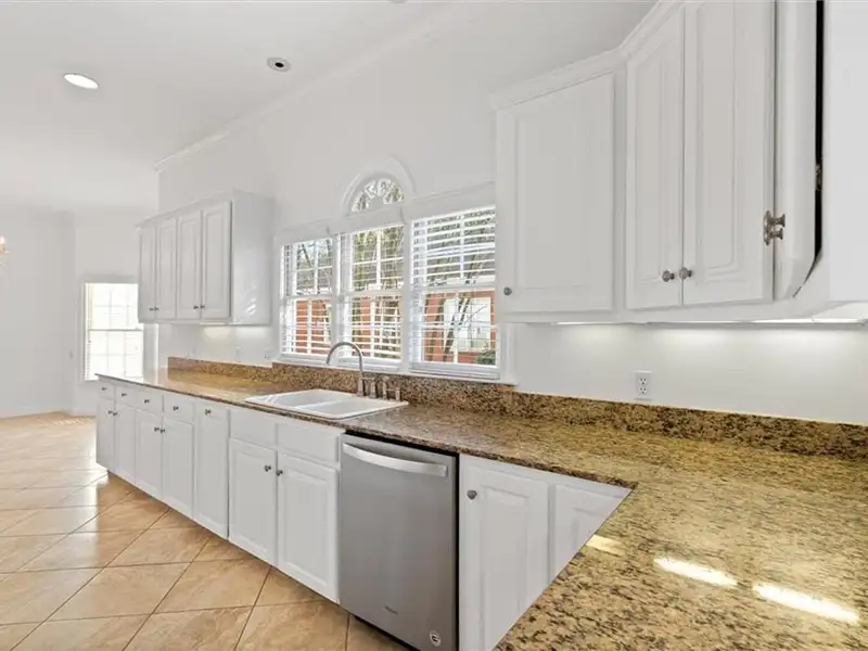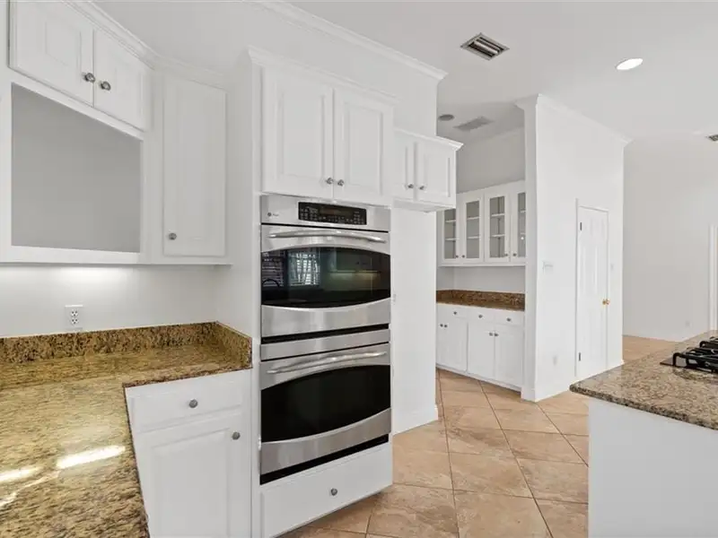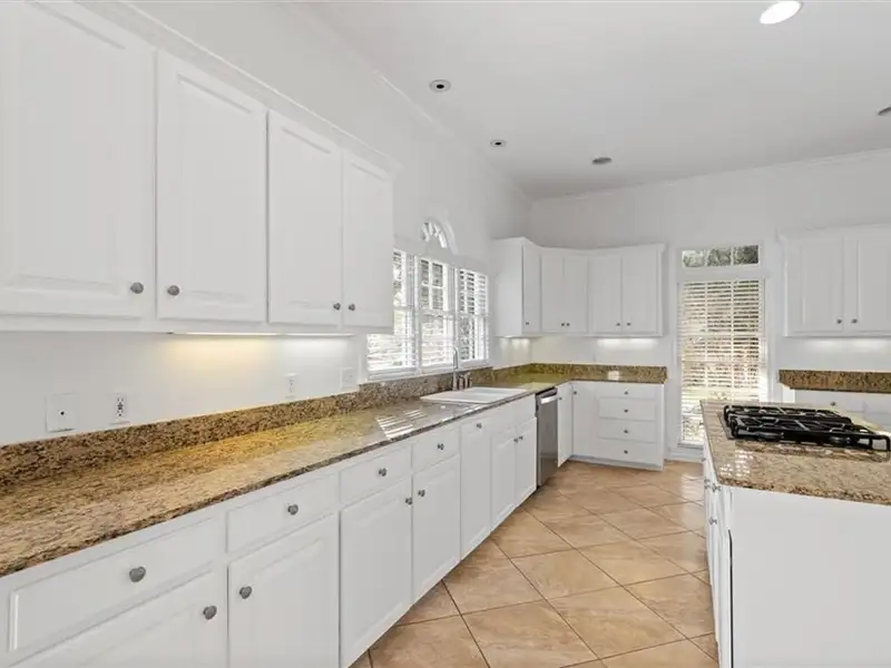 - Large kitchen with granite island and gas cooktop