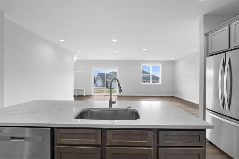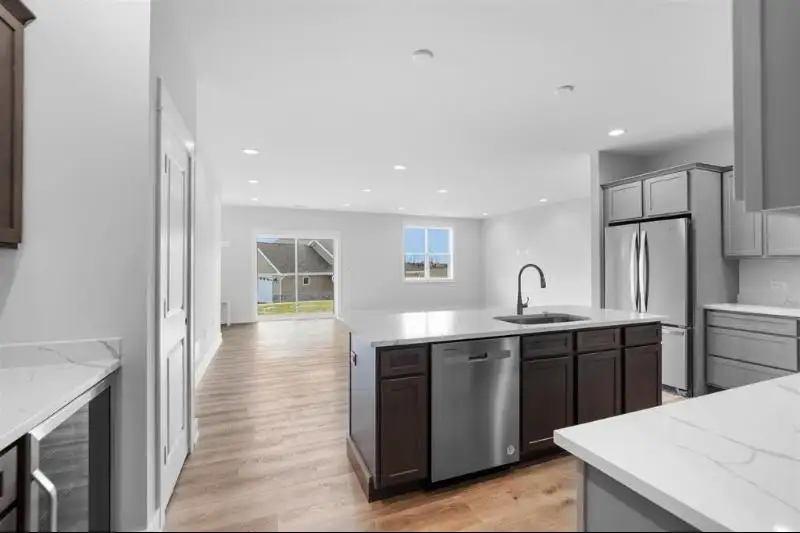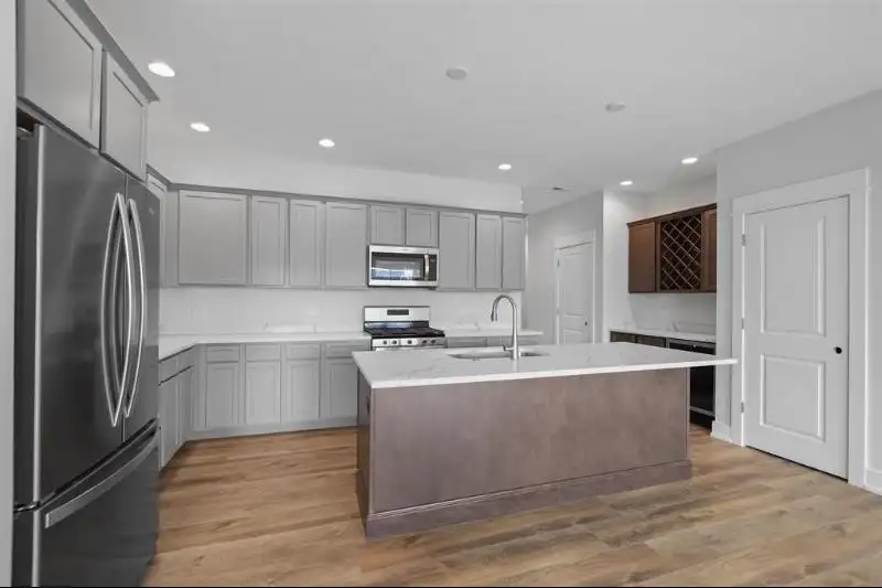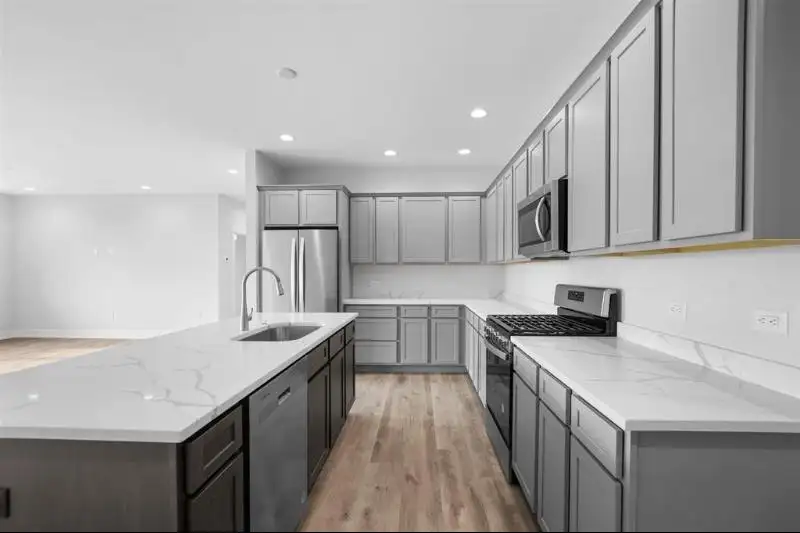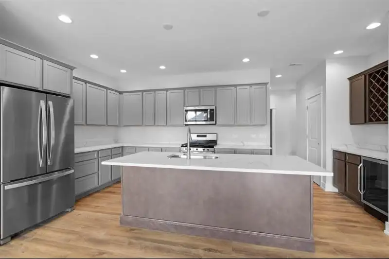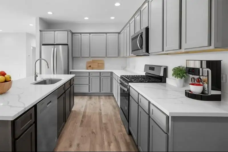 - Quartz kitchen countertops with island