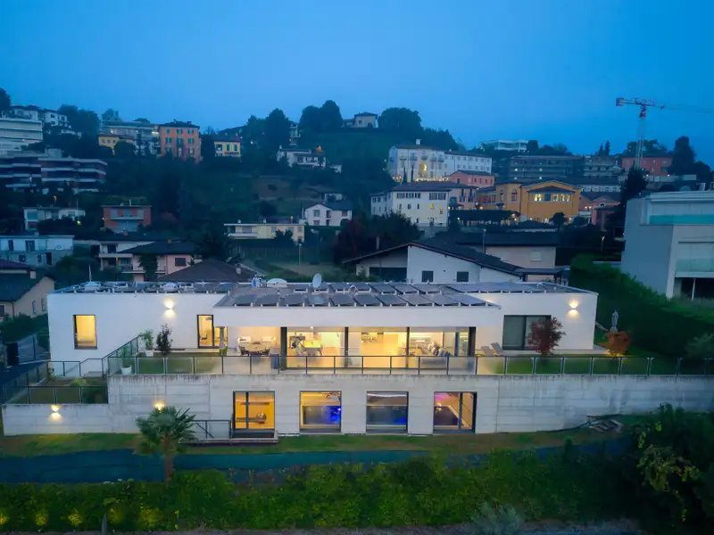 Nestled in the heart of Collina d'Oro, just a short walk from the prestigious TASIS International School, this residence embodies a rare blend of elegance, comfort, and natural light. Every space is designed to offer harmony with the surrounding landscape, combining privacy, wellness, and refined living.On the ground floor, a spacious and elegant entrance hall with a guest bathroom leads to the main living area, where the living and dining rooms open directly into the garden through large windows, bathing the interiors in light and offering a splendid view, the perfect setting for family gatherings or serene evenings with friends.The kitchen, fully equipped and featuring a generous central island, serves as the heart of the home. Ideal for family breakfasts or informal moments, it offers ample space for a dining table of six, leaving the main dining area for special occasions. A convenient dumbwaiter connects the lower level, making it easy to transport groceries and beverages.The same floor hosts two bedrooms, each with its own en-suite bathroom, and a versatile hobby room perfect for use as a playroom, or creative space. The master bedroom, bright and spacious, includes a bathroom with a bathtub and direct access to the garden, while an adjoining study with wardrobe and private bathroom provides an ideal retreat for work or reading.As you move towards the lower level, a stunning original sculpture by Nag Arnoldi, valued at approximately CHF 300,000, graces the stairway landing, adding a unique artistic touch that enhances the property's sophistication and character.The lower floor opens to a true wellness sanctuary. The indoor heated pool with direct garden access and shower area invites relaxation in a bright, serene atmosphere. The fitness room, separated by a long glass wall, allows one to exercise while overlooking the pool, and the SPA area with sauna, steam bath, and whirlpool offers a private haven for body and mind.This level also features a self-contained apartment with living room, kitchen, bedroom, and bathroom, perfect for guests or staff, as well as a private cinema room for exclusive entertainment. Service areas such as a laundry room, technical space with structured cabling, and an internal garage complete the lower floor.Surrounded by the lush landscape of Collina d'Oro, the property offers a lifestyle immersed in nature, culture, and tranquility. Picturesque walking trails, fine dining, and cultural landmarks such as the Hermann Hesse Museum in Montagnola create a setting where leisure, sophistication, and well-being merge seamlessly.Living here means embracing a life where nature, art, and elegance coexist in perfect harmony, with the convenience of TASIS just a few minutes away and the refined quality of life that defines the Ticino region.