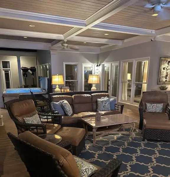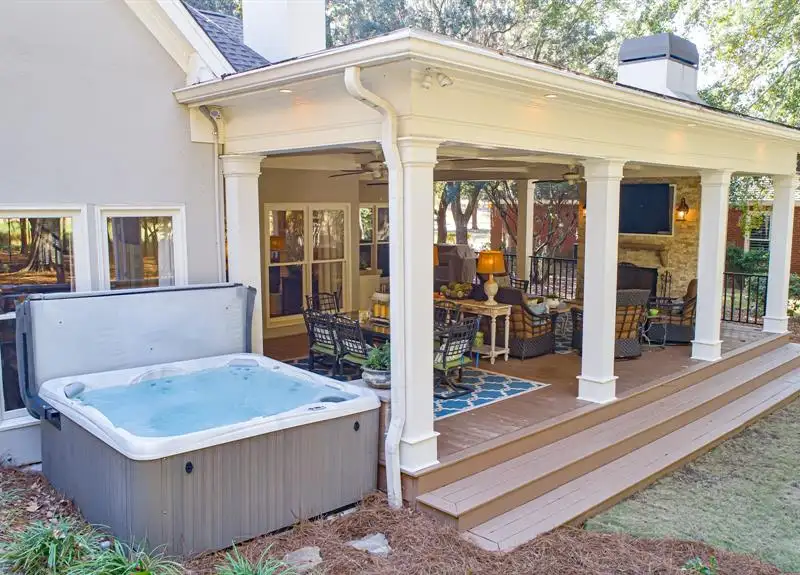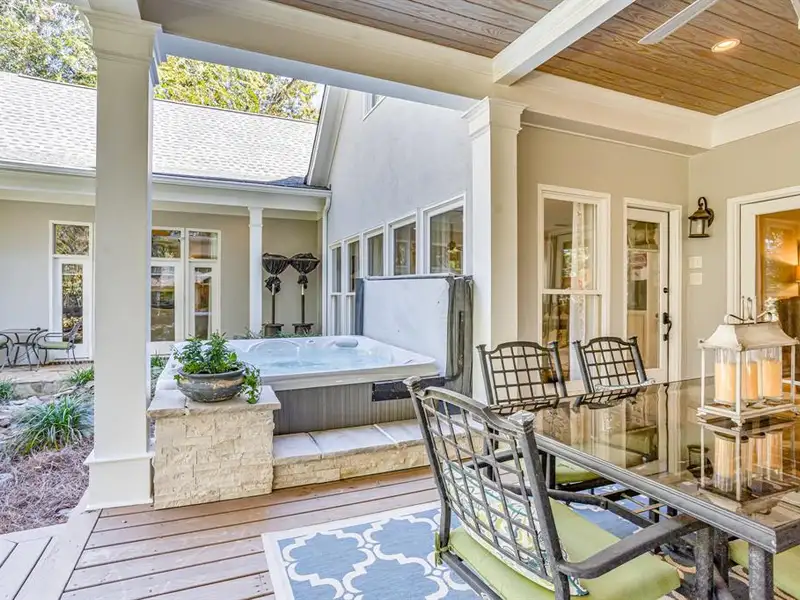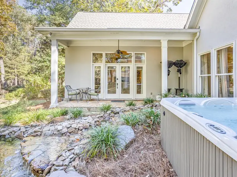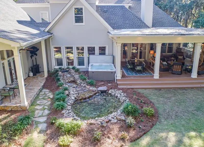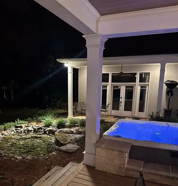 - Professionally landscaped backyard with hot tub