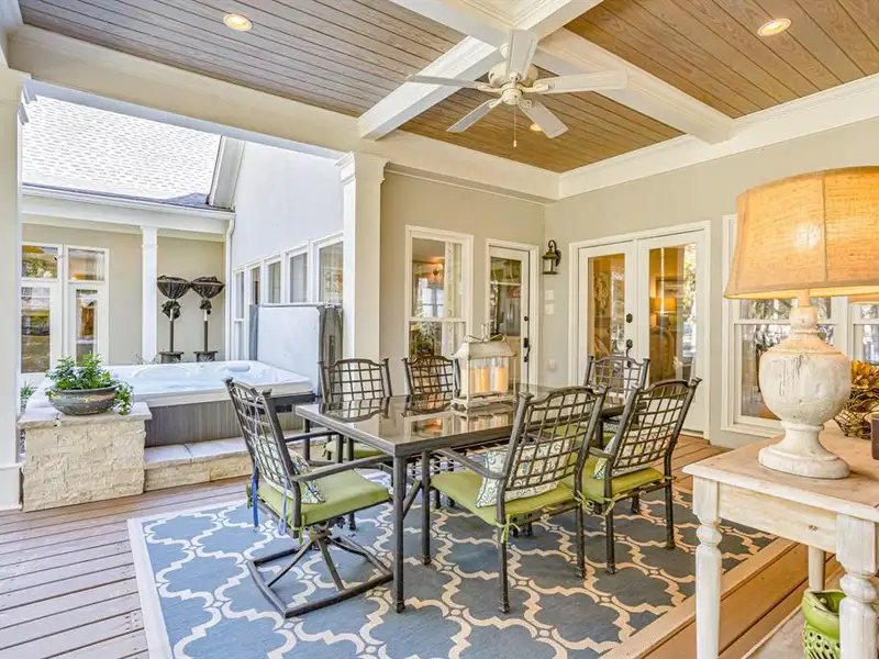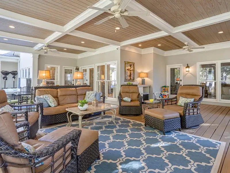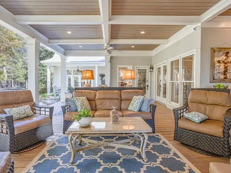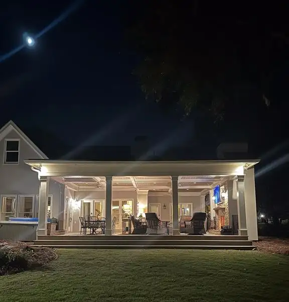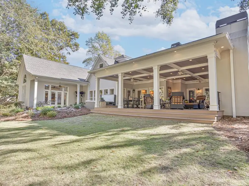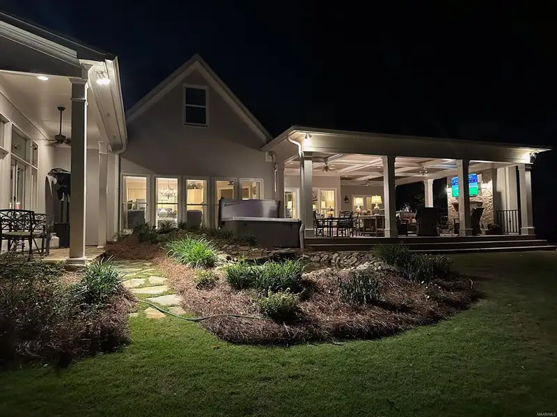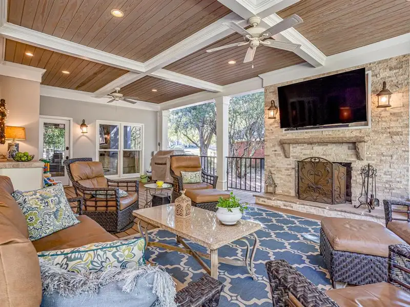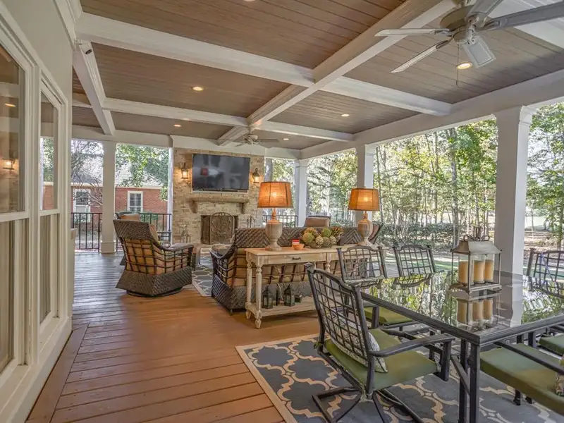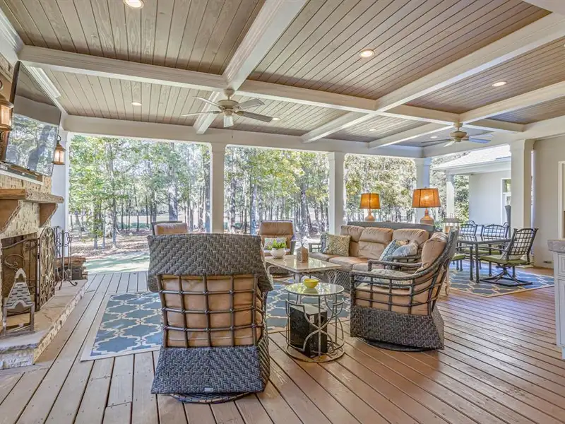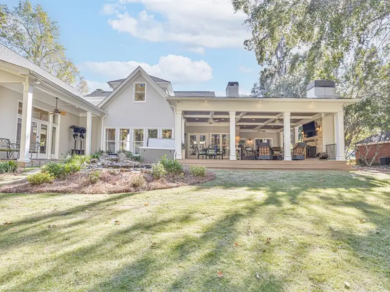 - Covered back porch with fireplace