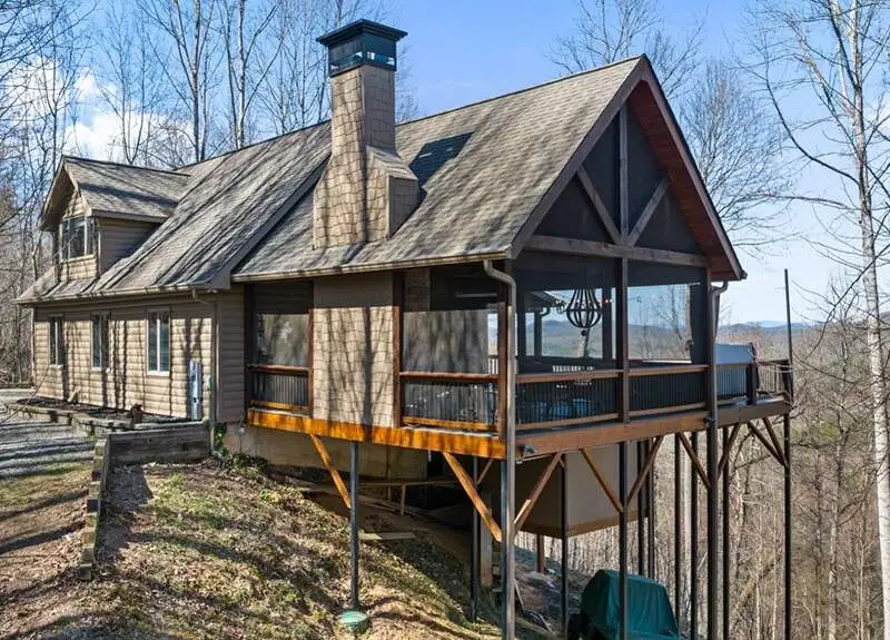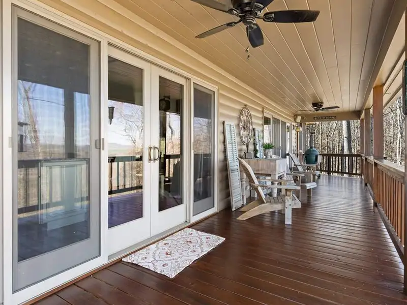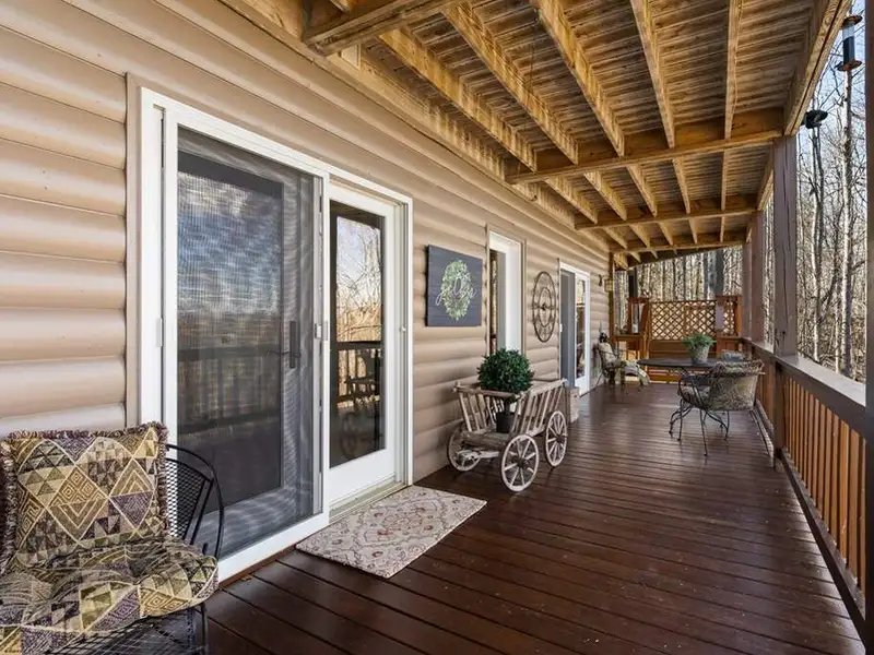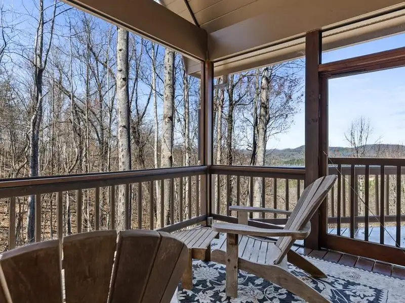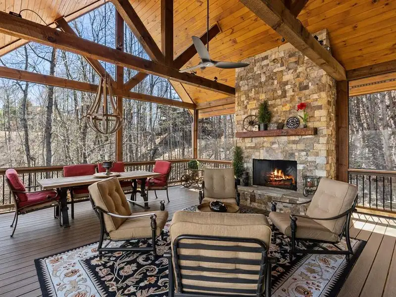 - Screened porch with wood-burning fireplace