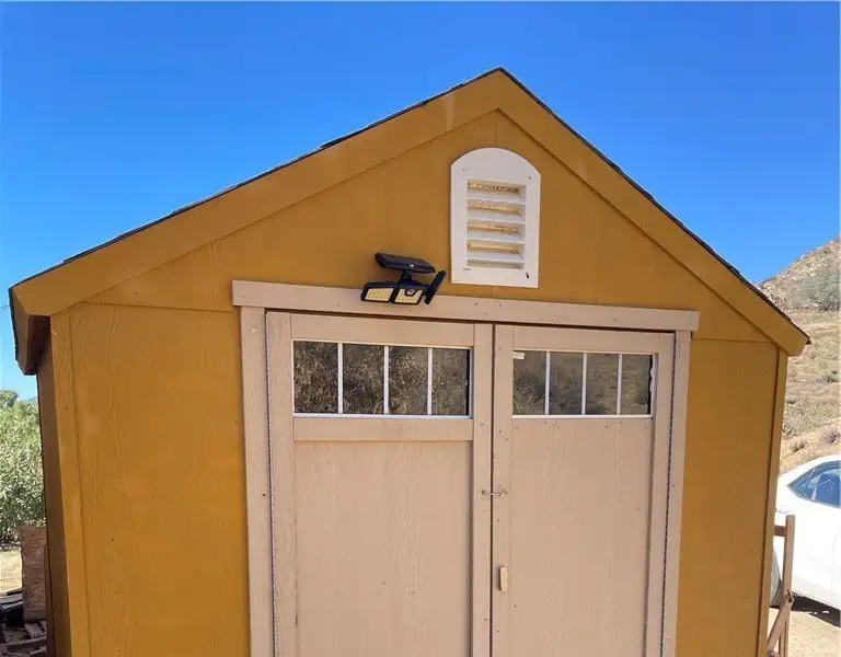 - Large storage shed included