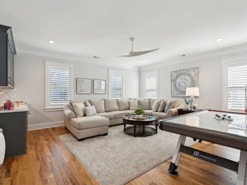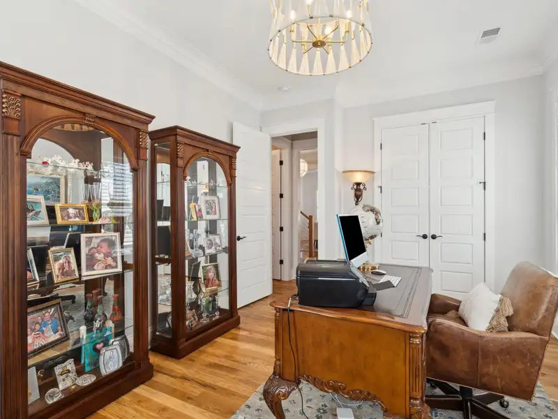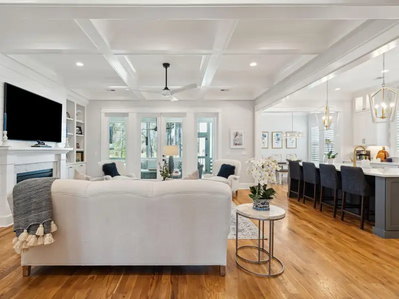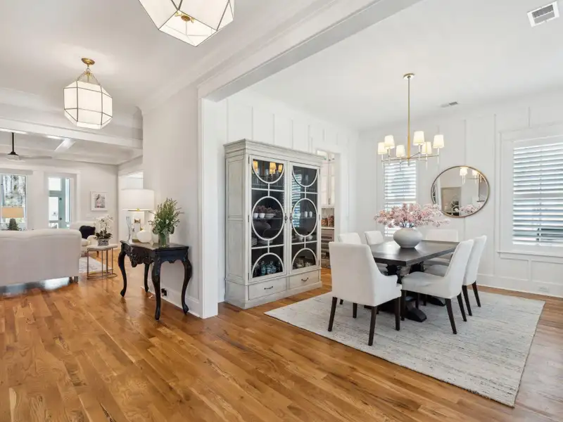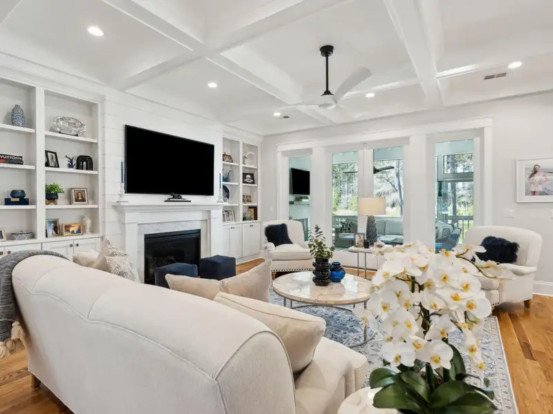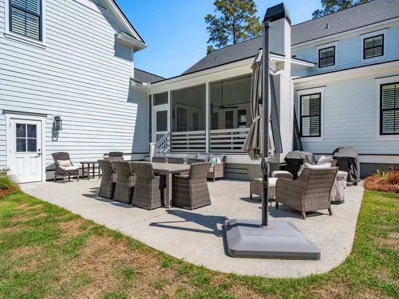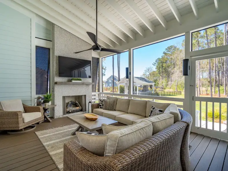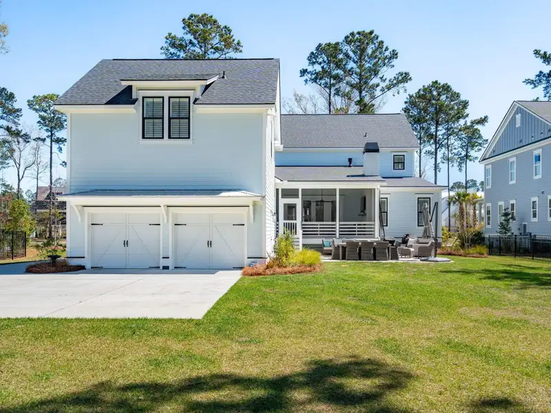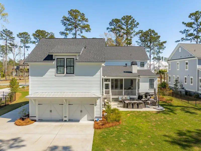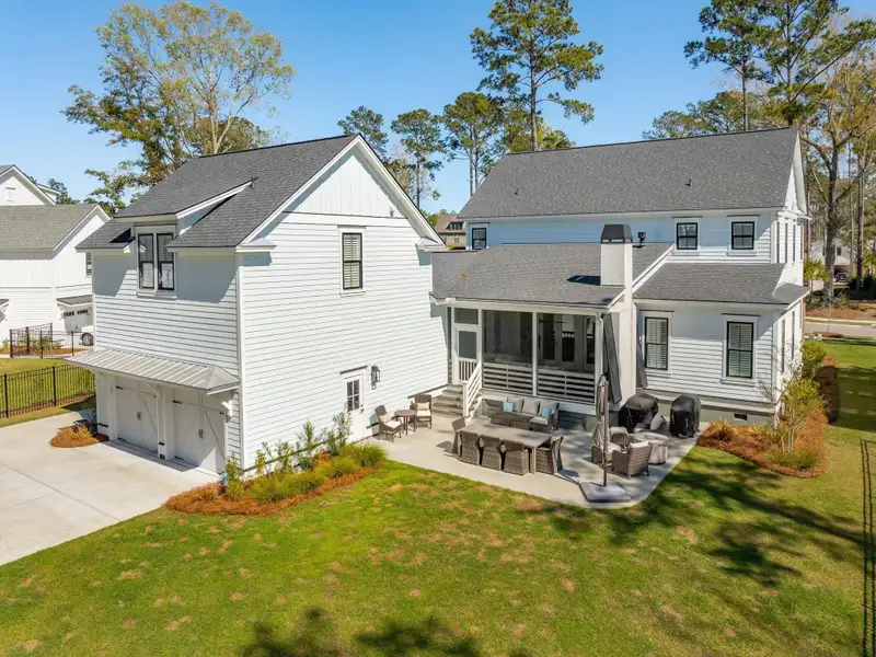 Past the sparkling waters of Bolden Lake, nestled into a beautiful landscape in highly desired Riverside at Carolina Park, this custom designed residence, built by award winning Cline Homes, showcases the ultimate blend of Lowcountry charm and modern elegance. Custom finishes abound, and no detail was left unattended in this stunning masterpiece. The inviting wrap-around porch welcomes you into a light filled and airy home complete with everything from multiple flex/bonus spaces to a private office. As you enter the foyer, you'll note the bespoke millwork and refined touches that are present throughout the home. A formal Dining Room offers a stylish space to gather for celebratory dinners and is finished with beautiful board-and-batten walls. Serving dinner here is a breeze with the adjacent Butler's Pantry with beverage fridge connecting to the kitchen. A private study or home office is tucked into a quiet area off of the foyer or utilize this as an additional bedroom as it is complete with a closet. The entry flows into the rear of the home and the floor plan opens to reveal an enlarged living area (the home was bumped out an additional two feet to enlarge the living space as well as the Owner's Suite) This room is spacious but manages to feel both cozy and inviting. The coffered ceiling caps off a gorgeous focal point fireplace with marble surround, shiplap wall, and flanked on either side by custom built-ins, providing extra storage as well as a place to display photos and keepsakes. Perfect for entertaining, this room is open to the true gourmet kitchen. A large island offers additional seating for grabbing a quick bite or a place to sit and chat while gathered in everyone's favorite room in the house! Even someone who doesn't cook would find themselves drawn to the beauty and functionality of this designer inspired kitchen. Brushed gold hardware and fixtures offer warm contrast to the sleek whites and grays of the quartz countertops and crisp custom cabinetry. For those who know their way around the kitchen the professional style stainless appliances, including six burner range top and dual convection ovens, will be sure to please. The Butler's Pantry provides the shortcut to the dining room as well as an ideal place for coffee or cocktail bar and a walk-in pantry keeps necessities tucked away and organized. A furniture styled vent hood and to-the-ceiling custom tile work complete the stunning kitchen. A large casual dining nook provides a sunny space to enjoy everyday meals and features shiplap ceiling and access to the porch. A much desired main floor Owners' Suite is a true oasis of calm in this home. The enlarged retreat offers plenty of privacy with space to relax and features a luxury en-suite bathroom that evokes the feel of an upscale hotel. The spa-like bath boasts dual vanities, an oversized frameless shower with rainhead and handheld sprayer, freestanding soaker tub, private water closet, and two walk-ins with custom closet systems. Lighting and other finishes are fun yet refined and provide the polished style you expect in a home of this stature. Additional main floor conveniences include a guest powder room with hand painted wallpaper-look art, a coat closet with hidden, finished under stair storage, and a large laundry room complete with built-in drop zone, cabinetry and utility sink. A rear staircase leads to the first bonus/flex space that could easily be utilized as a guest or in-law suite. This generously sized room offers the space to serve various functions at once while providing a full bathroom and a wet bar with beverage refrigerator. Head to the second floor via a staircase with cable stay rail system, hardwood treads, and a gorgeous focal wall at the top. Two secondary bedrooms share a jack-n-jill style bathroom, ideal for children or guests. A fourth bedroom has its own private en-suite bath. You'll find that every room and bathroom in the home flows nicely with complimentary finishes and fixtures, yet all are unique and hand selected for a custom look. Possibly the most versatile space in the home is the second floor bonus room. Complete with full wet bar with beverage fridge and microwave, this room is easily utilized as anything from a media room, game room, exercise studio, playroom, or secondary family room to teen retreat. Gather friends to watch the big game or roll out the yoga mats in your personal wellness studio and make post-workout smoothies. The possibilities are truly endless! While the interior of this home is truly impressive, the outdoor living space does not disappoint. In addition to the wrap-around southern style front porch, a rear screened-in porch provides a private place to enjoy morning coffee or grab a blanket and a glass of wine to sip in front of the beautiful fireplace on Lowcountry Spring evenings. The spacious yard offers plenty of room for children and pets to play while backing to a privacy buffer of trees. Riverside at Carolina Park offers an endless array of amenities, including the Lake Club featuring a resort-style pool, picnic pavilion, and fire pit overlooking scenic Bolden Lake. Residents have access to a playground, tennis and pickleball courts, an open-air pavilion, dog park, the Great Lawn, miles of walking trails, as well as access to a private Sawyers Island community dock for kayaking, fishing, and paddle boarding. The Bend shopping development, easily accessed by a quick golf cart or bike ride, includes restaurants, coffee shops, boutiques, a wine bar, hair and nail salons, yoga and dance studios, and other local businesses. Top rated Mount Pleasant schools, including Carolina Park Elementary within biking distance, Roper hospital, pharmacies and grocery stores are also in the immediate vicinity. All of this and just minutes to the area beaches and the world class shopping and dining of historic downtown Charleston.