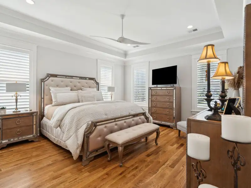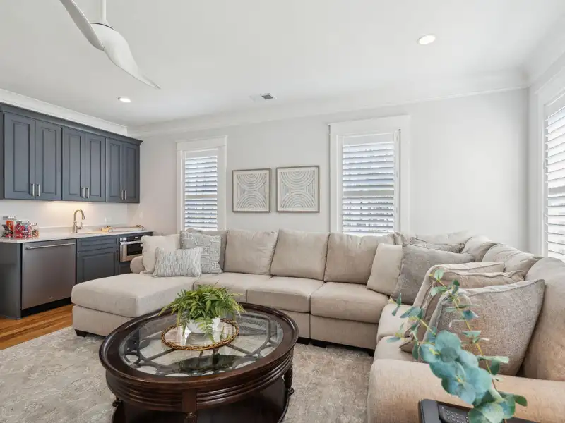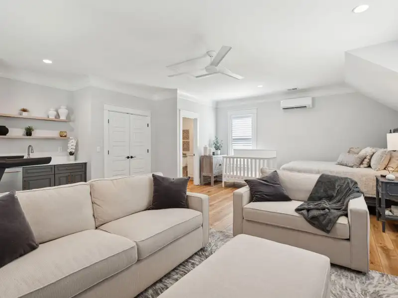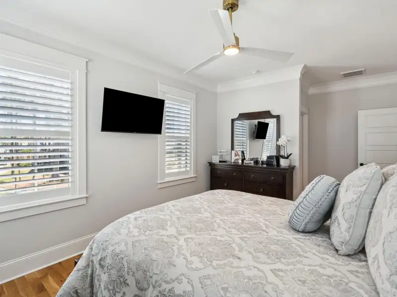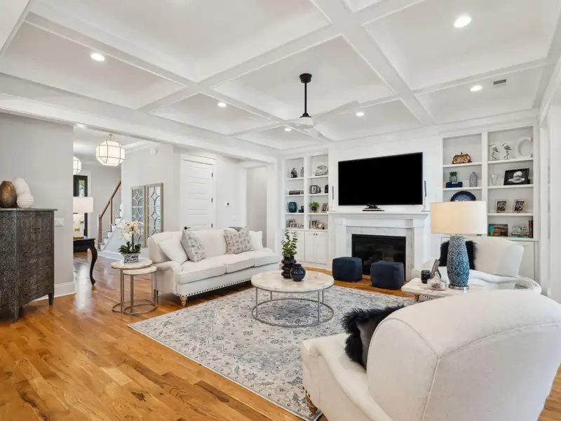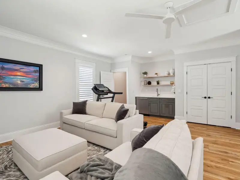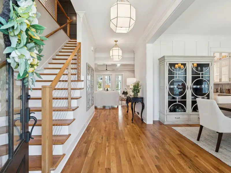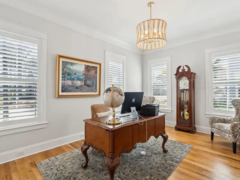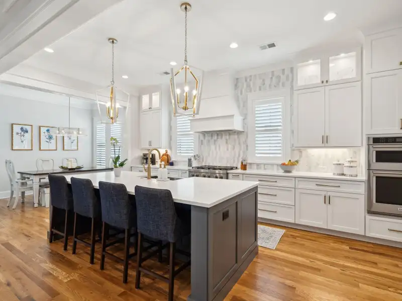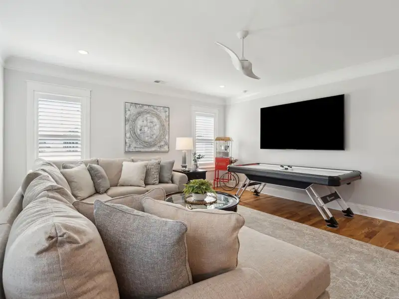 Past the sparkling waters of Bolden Lake, nestled into a beautiful landscape in highly desired Riverside at Carolina Park, this custom designed residence, built by award winning Cline Homes, showcases the ultimate blend of Lowcountry charm and modern elegance. Custom finishes abound, and no detail was left unattended in this stunning masterpiece. The inviting wrap-around porch welcomes you into a light filled and airy home complete with everything from multiple flex/bonus spaces to a private office. As you enter the foyer, you'll note the bespoke millwork and refined touches that are present throughout the home. A formal Dining Room offers a stylish space to gather for celebratory dinners and is finished with beautiful board-and-batten walls. Serving dinner here is a breeze with the adjacent Butler's Pantry with beverage fridge connecting to the kitchen. A private study or home office is tucked into a quiet area off of the foyer or utilize this as an additional bedroom as it is complete with a closet. The entry flows into the rear of the home and the floor plan opens to reveal an enlarged living area (the home was bumped out an additional two feet to enlarge the living space as well as the Owner's Suite) This room is spacious but manages to feel both cozy and inviting. The coffered ceiling caps off a gorgeous focal point fireplace with marble surround, shiplap wall, and flanked on either side by custom built-ins, providing extra storage as well as a place to display photos and keepsakes. Perfect for entertaining, this room is open to the true gourmet kitchen. A large island offers additional seating for grabbing a quick bite or a place to sit and chat while gathered in everyone's favorite room in the house! Even someone who doesn't cook would find themselves drawn to the beauty and functionality of this designer inspired kitchen. Brushed gold hardware and fixtures offer warm contrast to the sleek whites and grays of the quartz countertops and crisp custom cabinetry. For those who know their way around the kitchen the professional style stainless appliances, including six burner range top and dual convection ovens, will be sure to please. The Butler's Pantry provides the shortcut to the dining room as well as an ideal place for coffee or cocktail bar and a walk-in pantry keeps necessities tucked away and organized. A furniture styled vent hood and to-the-ceiling custom tile work complete the stunning kitchen. A large casual dining nook provides a sunny space to enjoy everyday meals and features shiplap ceiling and access to the porch. A much desired main floor Owners' Suite is a true oasis of calm in this home. The enlarged retreat offers plenty of privacy with space to relax and features a luxury en-suite bathroom that evokes the feel of an upscale hotel. The spa-like bath boasts dual vanities, an oversized frameless shower with rainhead and handheld sprayer, freestanding soaker tub, private water closet, and two walk-ins with custom closet systems. Lighting and other finishes are fun yet refined and provide the polished style you expect in a home of this stature. Additional main floor conveniences include a guest powder room with hand painted wallpaper-look art, a coat closet with hidden, finished under stair storage, and a large laundry room complete with built-in drop zone, cabinetry and utility sink. A rear staircase leads to the first bonus/flex space that could easily be utilized as a guest or in-law suite. This generously sized room offers the space to serve various functions at once while providing a full bathroom and a wet bar with beverage refrigerator. Head to the second floor via a staircase with cable stay rail system, hardwood treads, and a gorgeous focal wall at the top. Two secondary bedrooms share a jack-n-jill style bathroom, ideal for children or guests. A fourth bedroom has its own private en-suite bath. You'll find that every room and bathroom in the home flows nicely with complimentary finishes and fixtures, yet all are unique and hand selected for a custom look. Possibly the most versatile space in the home is the second floor bonus room. Complete with full wet bar with beverage fridge and microwave, this room is easily utilized as anything from a media room, game room, exercise studio, playroom, or secondary family room to teen retreat. Gather friends to watch the big game or roll out the yoga mats in your personal wellness studio and make post-workout smoothies. The possibilities are truly endless! While the interior of this home is truly impressive, the outdoor living space does not disappoint. In addition to the wrap-around southern style front porch, a rear screened-in porch provides a private place to enjoy morning coffee or grab a blanket and a glass of wine to sip in front of the beautiful fireplace on Lowcountry Spring evenings. The spacious yard offers plenty of room for children and pets to play while backing to a privacy buffer of trees. Riverside at Carolina Park offers an endless array of amenities, including the Lake Club featuring a resort-style pool, picnic pavilion, and fire pit overlooking scenic Bolden Lake. Residents have access to a playground, tennis and pickleball courts, an open-air pavilion, dog park, the Great Lawn, miles of walking trails, as well as access to a private Sawyers Island community dock for kayaking, fishing, and paddle boarding. The Bend shopping development, easily accessed by a quick golf cart or bike ride, includes restaurants, coffee shops, boutiques, a wine bar, hair and nail salons, yoga and dance studios, and other local businesses. Top rated Mount Pleasant schools, including Carolina Park Elementary within biking distance, Roper hospital, pharmacies and grocery stores are also in the immediate vicinity. All of this and just minutes to the area beaches and the world class shopping and dining of historic downtown Charleston.