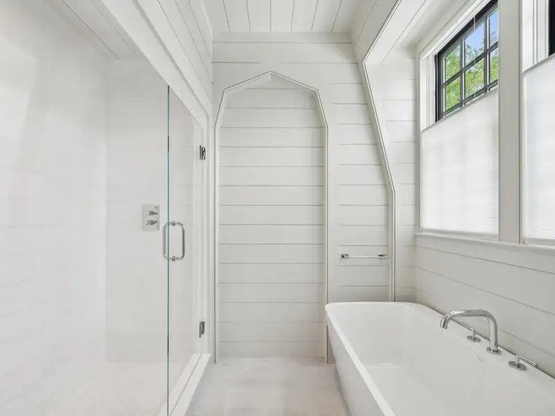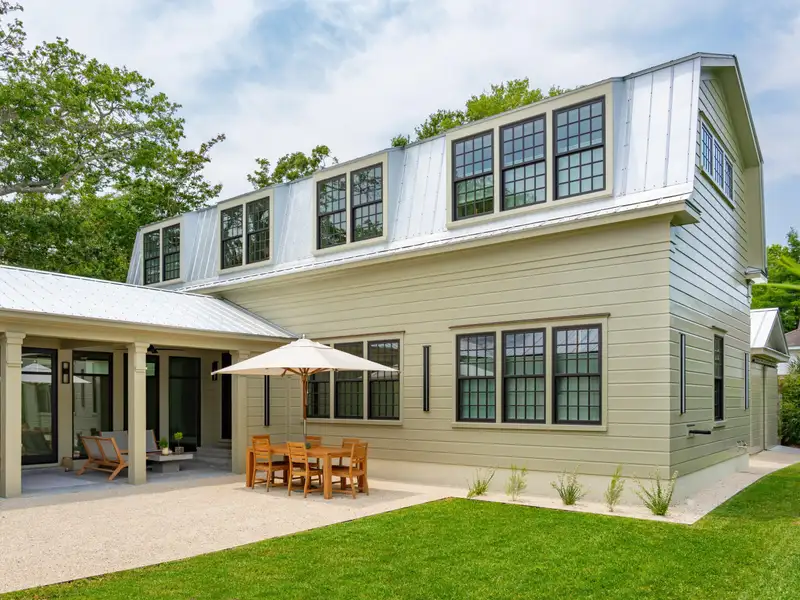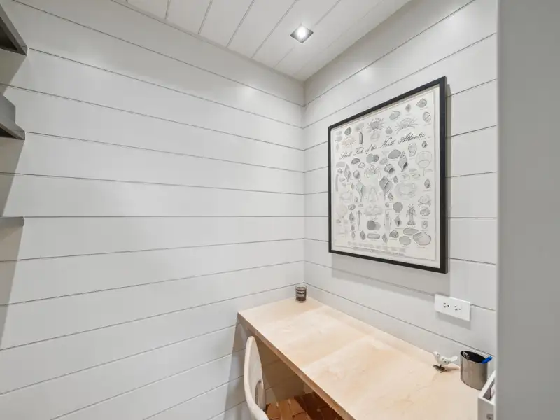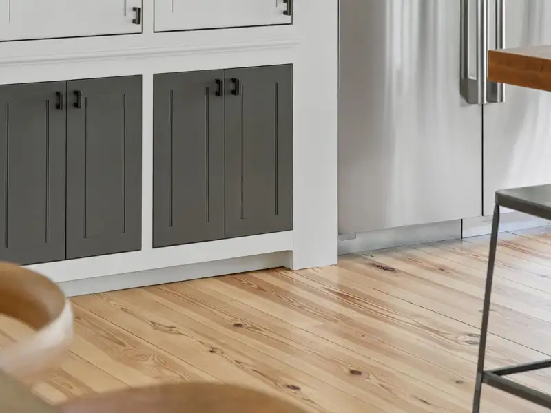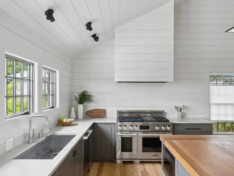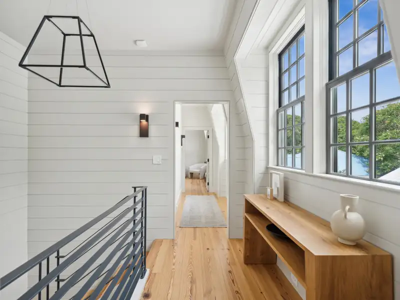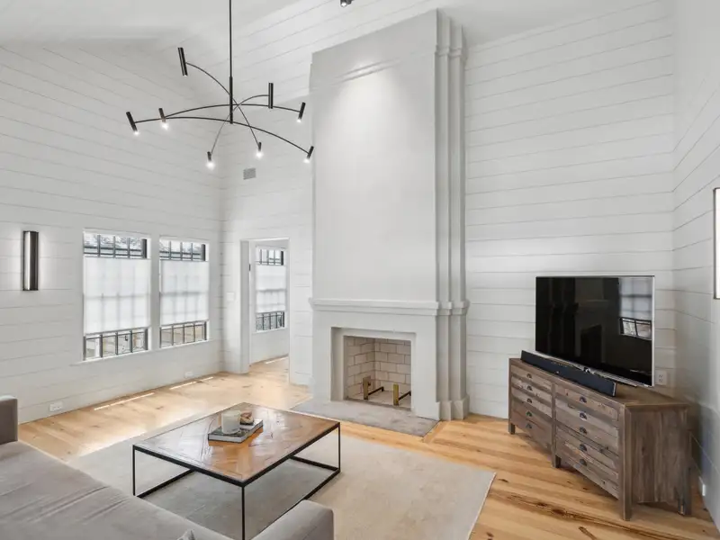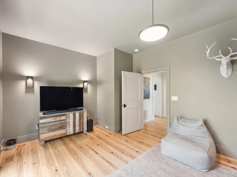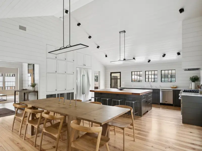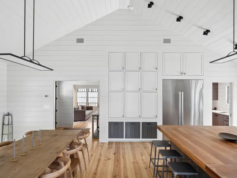 - Vaulted ceilings and reclaimed heart pine floors