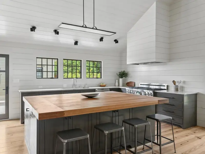 - High-end kitchen with custom maple island