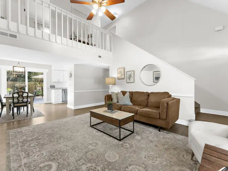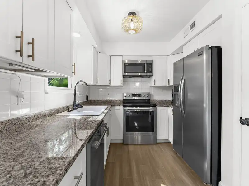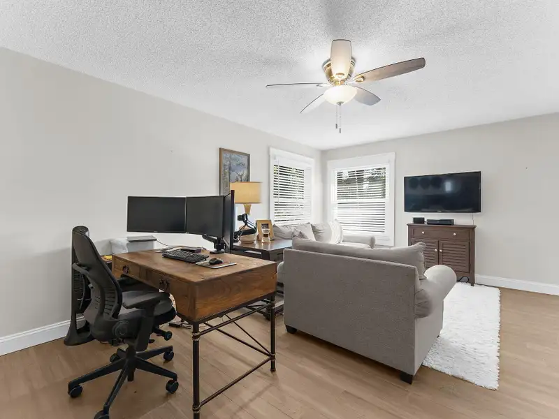 - Laminate floors throughout living spaces