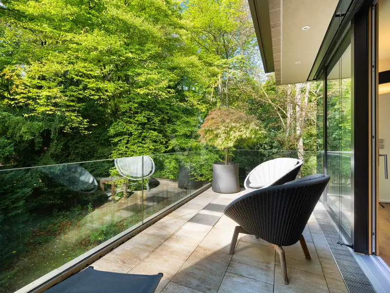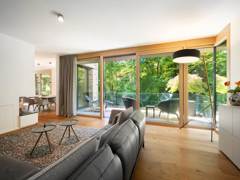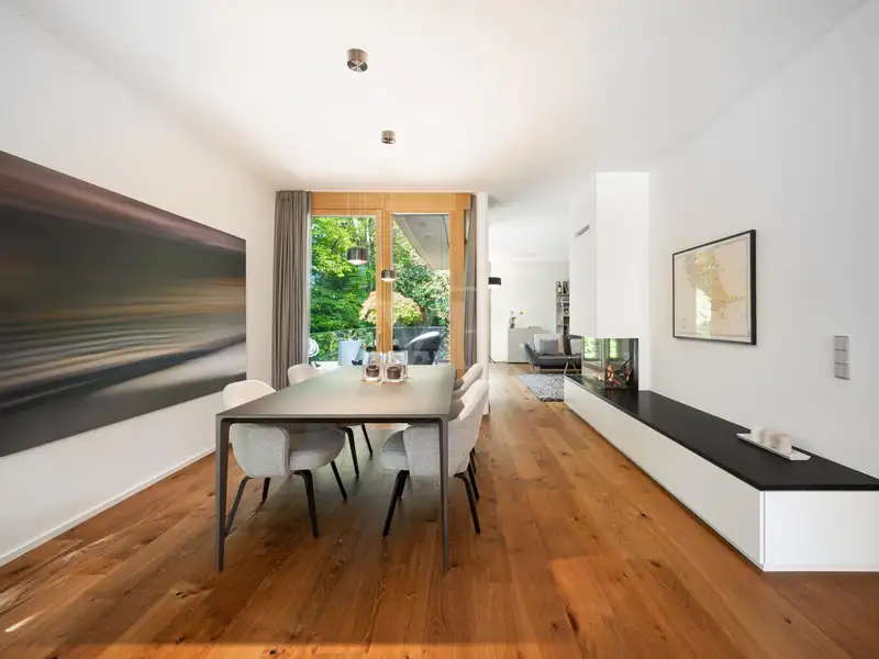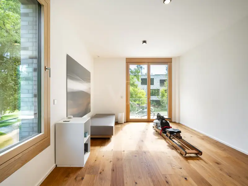 On the second floor of a new building from 2022 with only three units, this apartment offers around 176 m² of living space - well thought-out, clear and uncompromisingly high-quality. The location directly on the Hochleite stands for maximum privacy and a quality of living that is unparalleled in Munich.