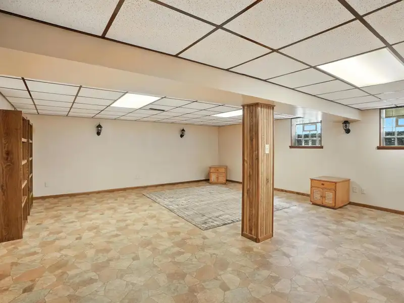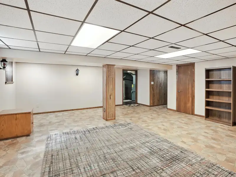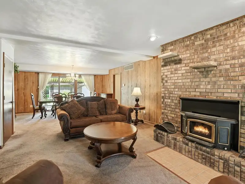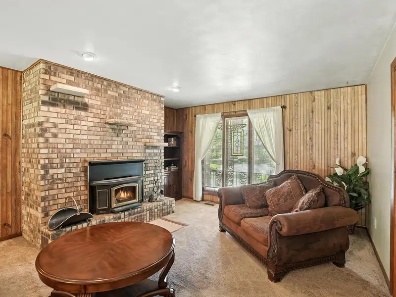 - Ground-level family room with fireplace