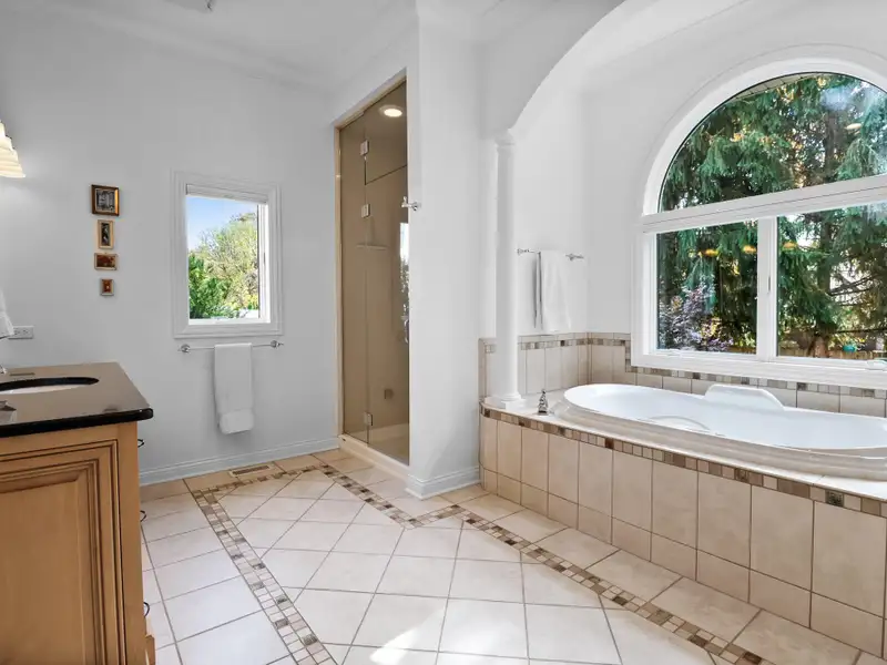- Main-level primary suite with steam shower