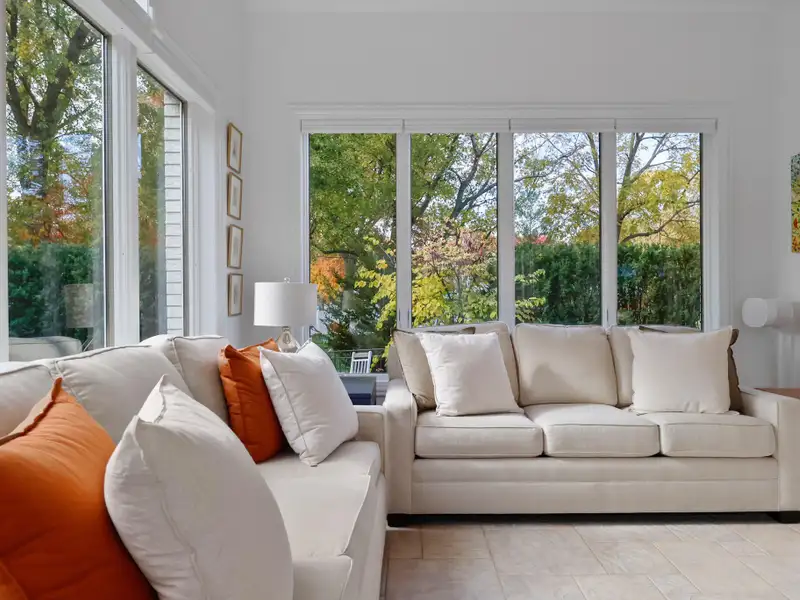 - Sunroom with motorized blinds
