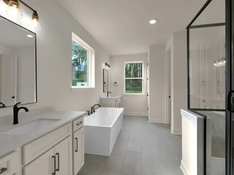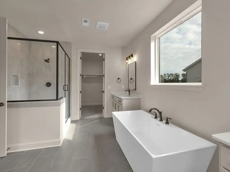 - Spacious primary bath with free-standing tub