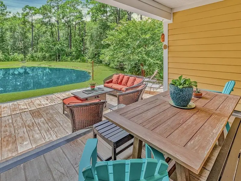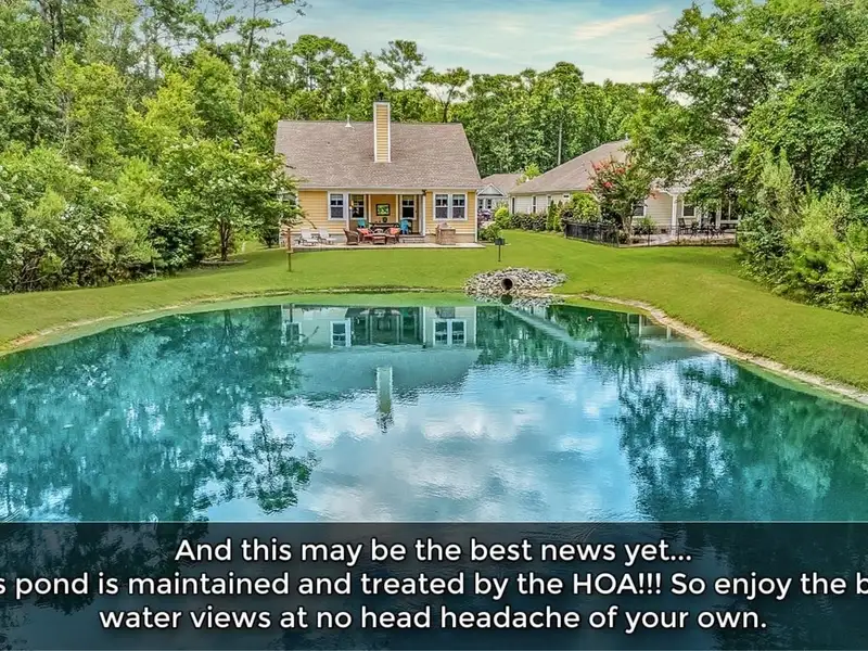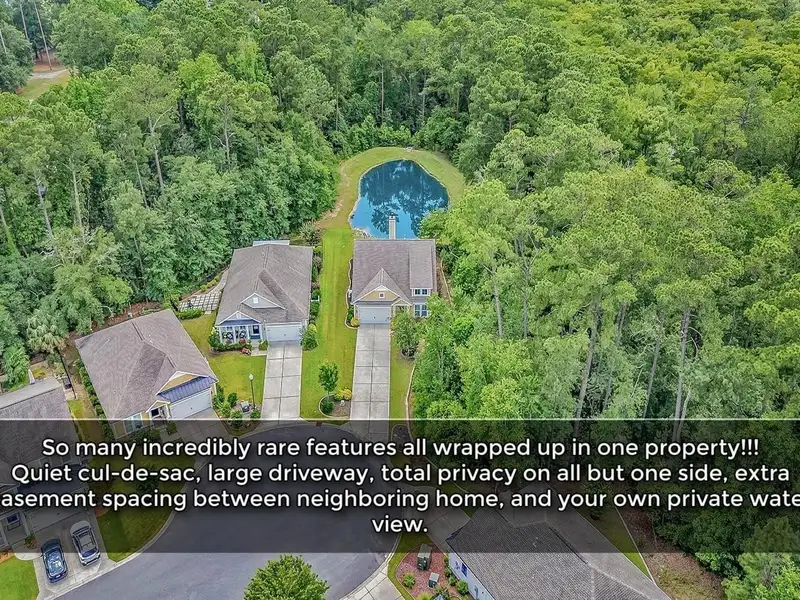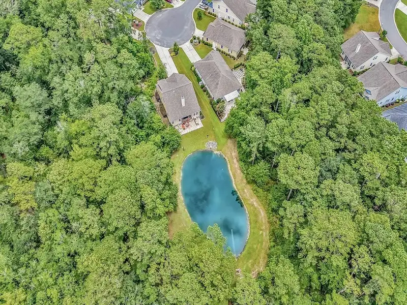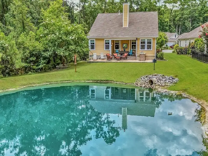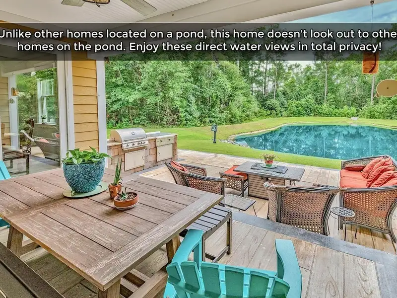 - Private pond view with lush privacy foliage