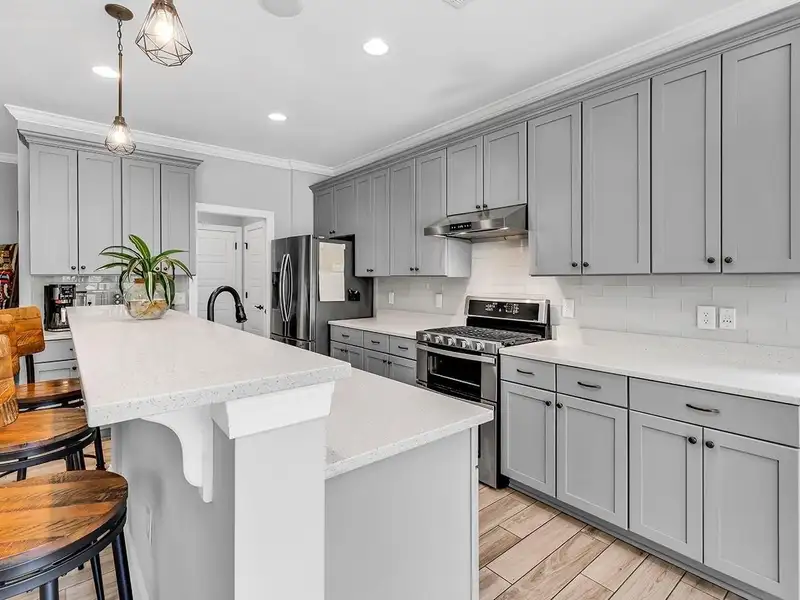 - Large kitchen with luxury wood-look tile