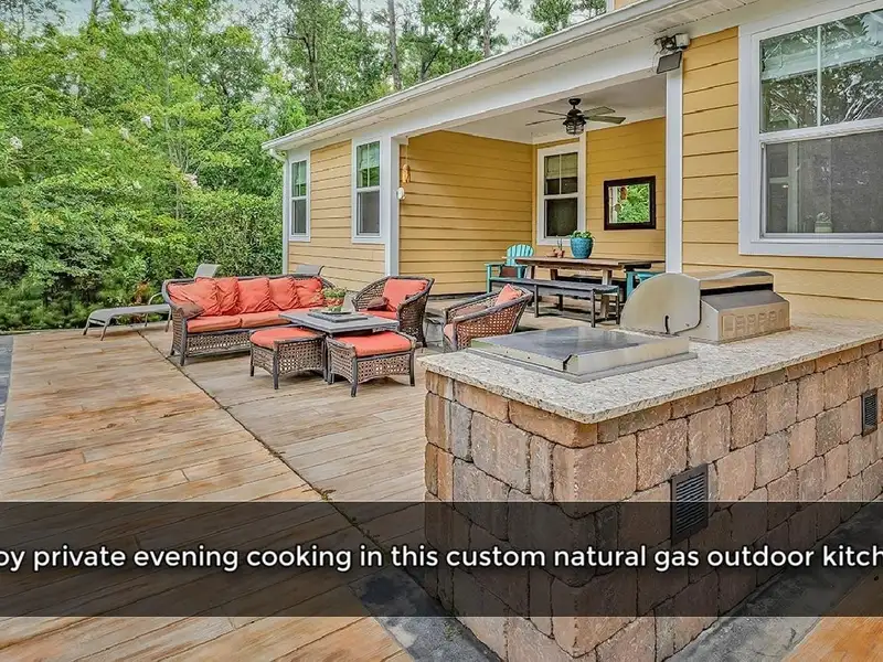 - Built-in outdoor kitchen and tiled patio