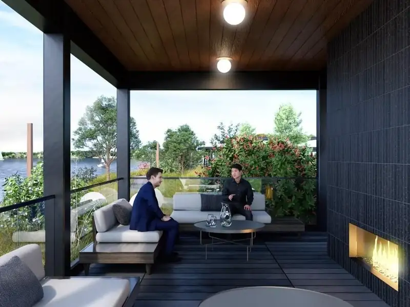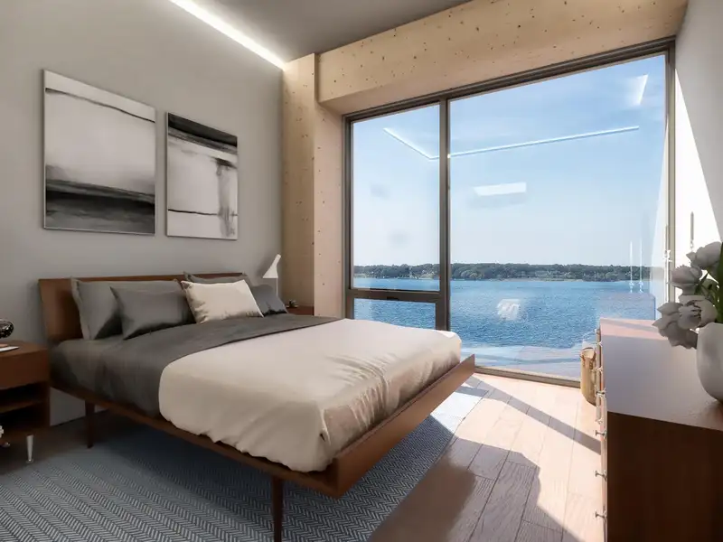 - Waterfront lap pool and fitness center