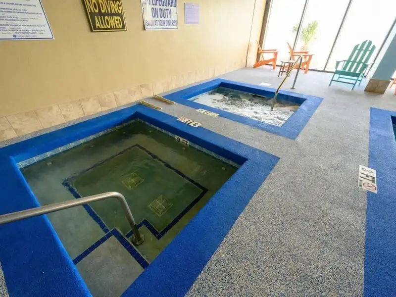 - Located above outdoor and indoor pools