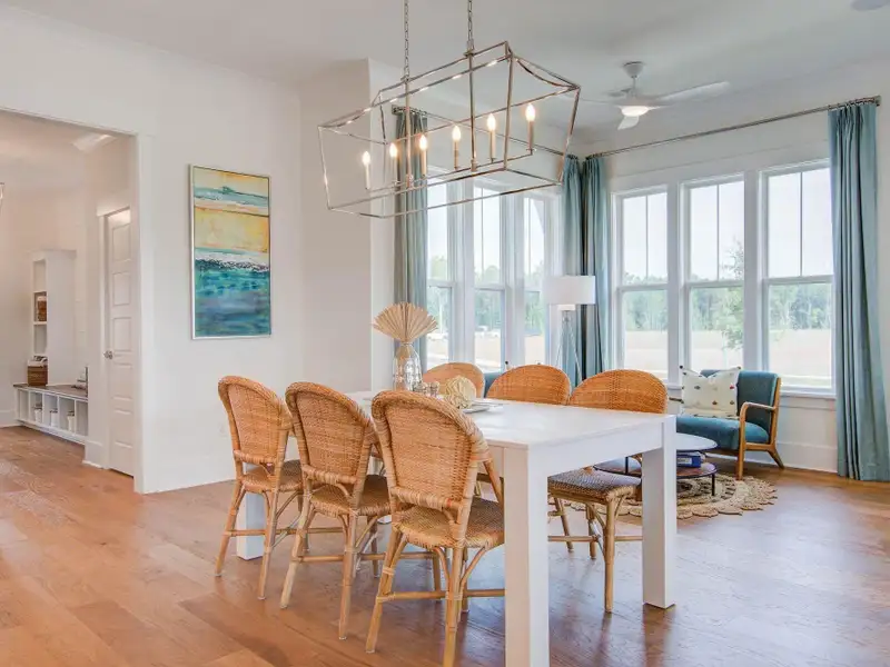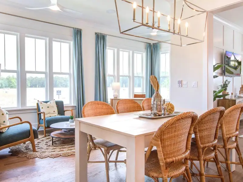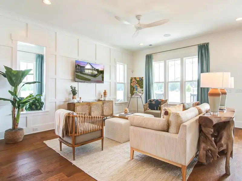 Builder is a Popular Regional Builder in North Carolina/South Carolina markets for over 30 years building Low Country/Coastal Style New Homes. Always paying attention to architectural details. Quality and Customer service is tops with this builder! COASTAL CHARM WITH ELEGANT FINISHES!! This coastal-style home features welcoming double front doors, and a wrap-around front porch for relaxing. Inside, you'll find an open-concept layout ideal for entertaining. Family Room, Kitchen, and Sunroom are enhanced by 10 ft. ceilings, abundant natural light from expansive windows, and elegant 5" Cove Crown Molding, Trimmed Windows and Doors. The Gourmet Kitchen is a Chef's dream, boasting of a Natural Gas Cooktop with hood vent, a built-in wall oven and microwave, a farmhouse-style Kohler white sink beneath an exterior window. Timberlake Linen Cabinetry, stylish backsplash, Pendant lighting above Island, and stunning quartz countertops. Engineered Mohawk hardwood flooring flows throughout the mail level and continues into First Floor Primary Bedroom, hardwood on stairs and second floor loft area. A large built-in drop zone in the hallway adds convenience and organization. The first-floor primary suite offers quartz countertops, and a serene retreat, complete with a spa-like bath featuring a freestanding soaking tub and a separate tiled shower. Second Floor offers a loft, and two spacious guest bedrooms with full bath, This home blends luxurious finishes with thoughtful design in a layout that's perfect for modern living and entertaining! Lawn sprinkler and security systems included. Hardi- board exteriors, raised foundations and attractive landscaping. Across the street from this home are preserved woods and in rear behind the homesite is a common area...so no home in front of it nor directly behind it. Some homeowners with ARB approval have installed their dream plunge pool and outdoor patio living space! IT IS A LIFESTYLE IN SAYEBROOK!! .Life is good at Sayebrook. Beautiful tree-lined streets with sidewalks, parks, walking trails, lakes, community meeting house, pool, covered pavilion, playground, basketball court,4 pickleball courts, fire pit, Dog Park. Coastal, small-town charm within walking/golf cart distance to Sayebrook Town Center. Homeowners can actually golf cart over to Market Common District from SayeBrook !! A natural gas community. Come tour our staged model home and available homes for quick move-in! See onsite agent for any available builder promotions. SHORT DRIVE TO MALLS, AIRPORT, BEACHES, MEDICAL, AND MORE!! This home can close January or February 2026. See agents for any builder savings. All measurements and sq. ft. are estimated only and not guaranteed by agent nor builder. Pictures shown are for illustrative purposes only and are interior pictures of our Barrington Model Home plan.