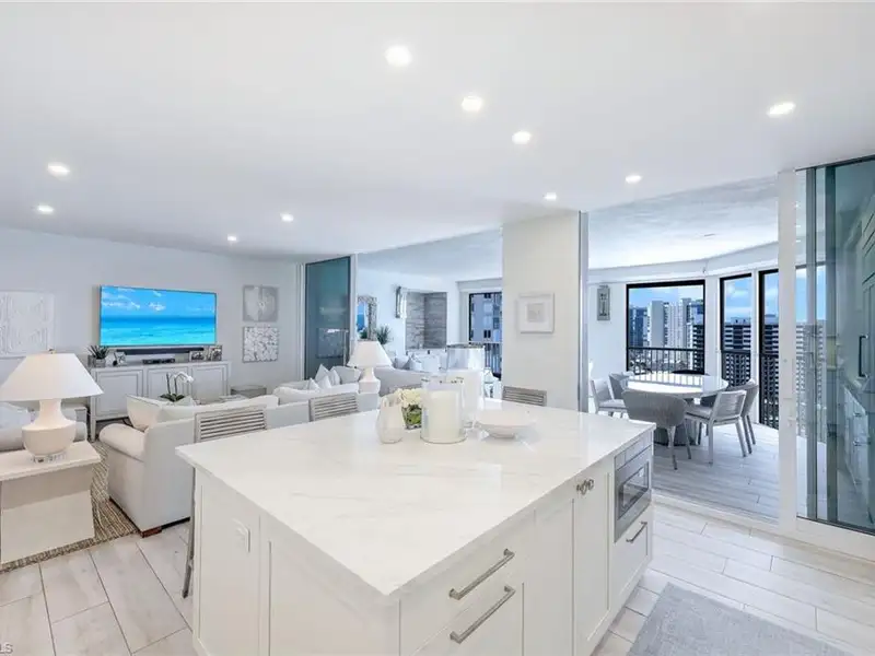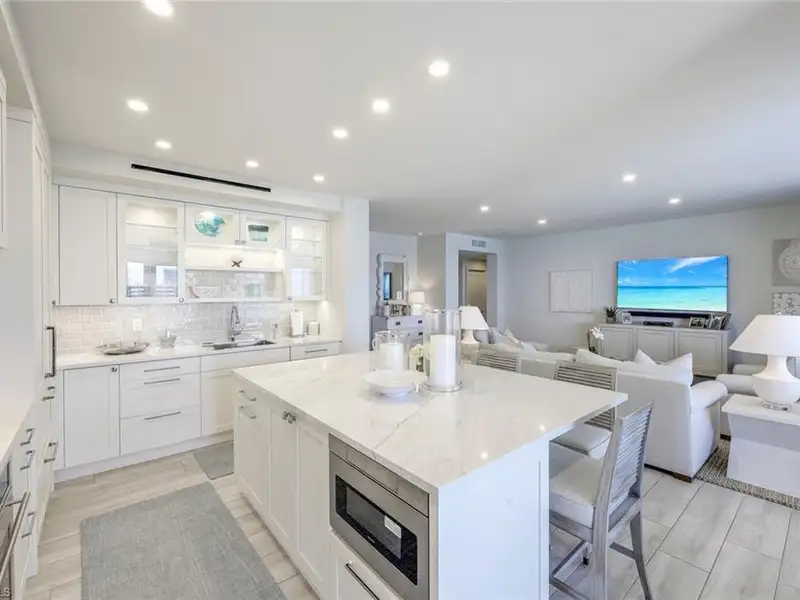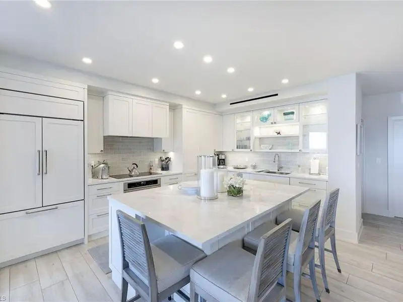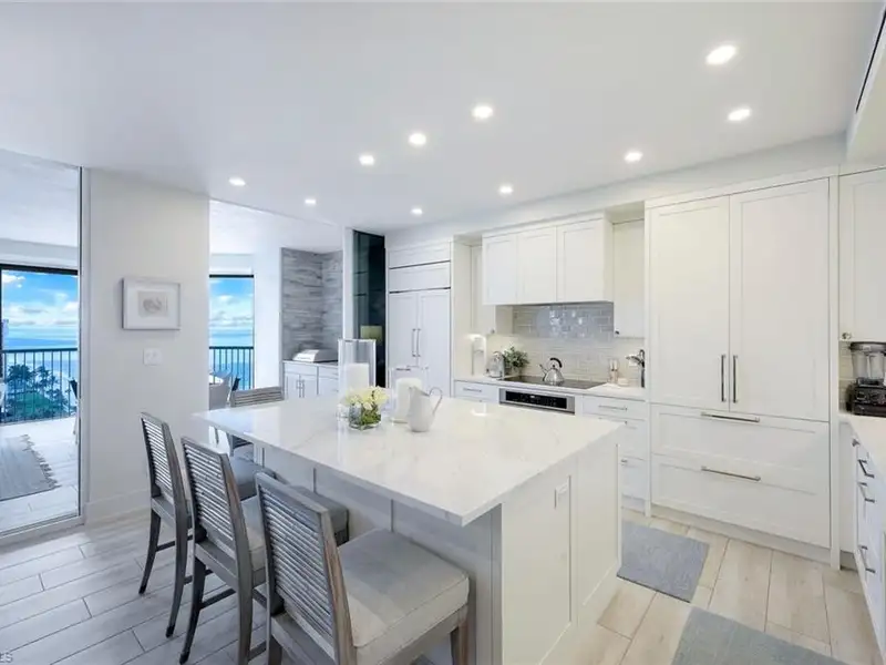 La Mer - Penthouse 105 offers you the unrivaled combination of location, views and ultra luxury living. Every detail of this residence has been thoroughly thought through providing you and your guests with the ultimate Naples beachfront vacation experience. Admire the custom cabinetry, quartz countertops, stainless appliances, oversized island, high-end finishes and fixtures with the perfect coastal contemporary furnishings to match. Large sliding glass doors leading out to your lanai allow for the perfect blend of indoor/outdoor living. Enjoy your electric grill and a cold beverage while overlooking the Gulf of Mexico and the perfectly manicured Park Shore landscaping. The building offers a spectacular community pool, fitness center, community room & grills. La Mer is the closest building to the Gulf of Mexico in all of Park Shore ensuring you are just steps to the white sandy beaches at all times. Conveniently located directly across the street from Venetian Village allowing you to e