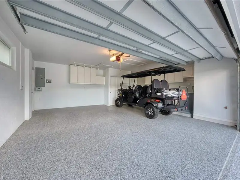 - Two-car garage with built-in shelving