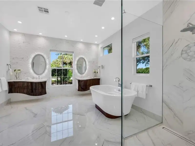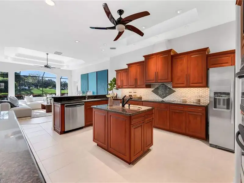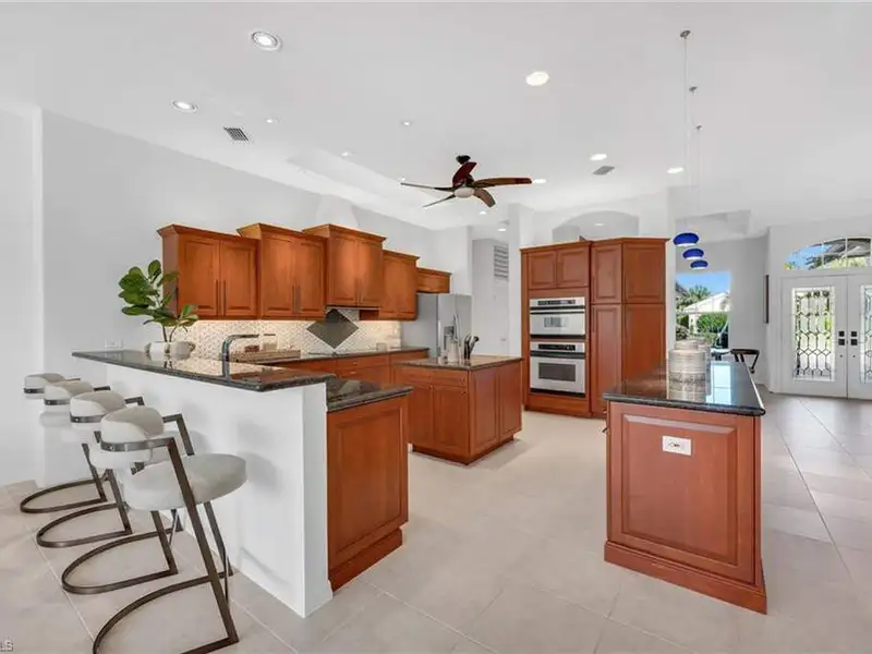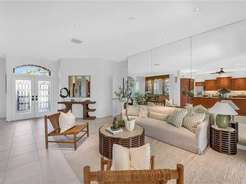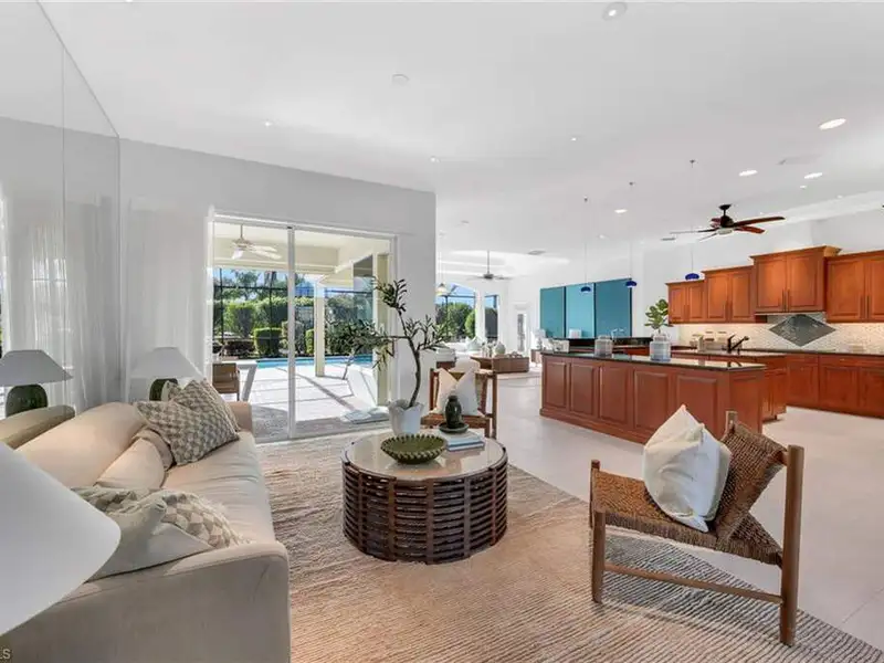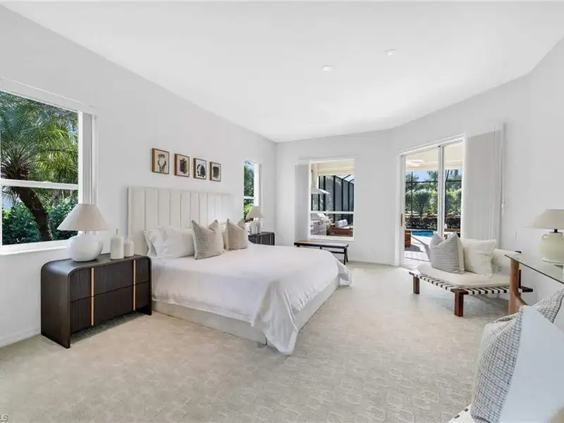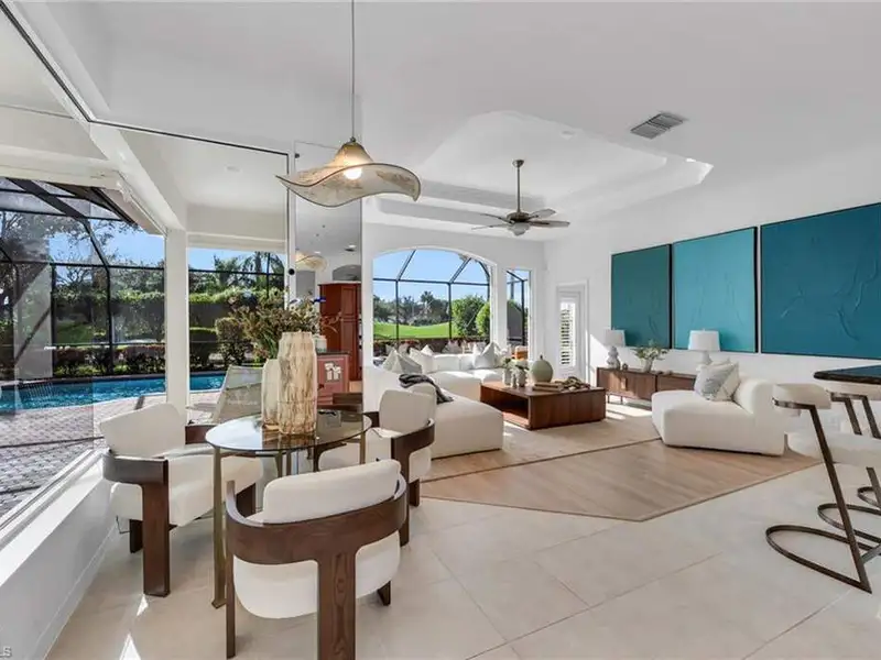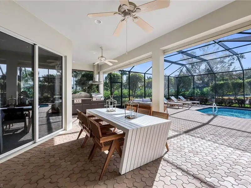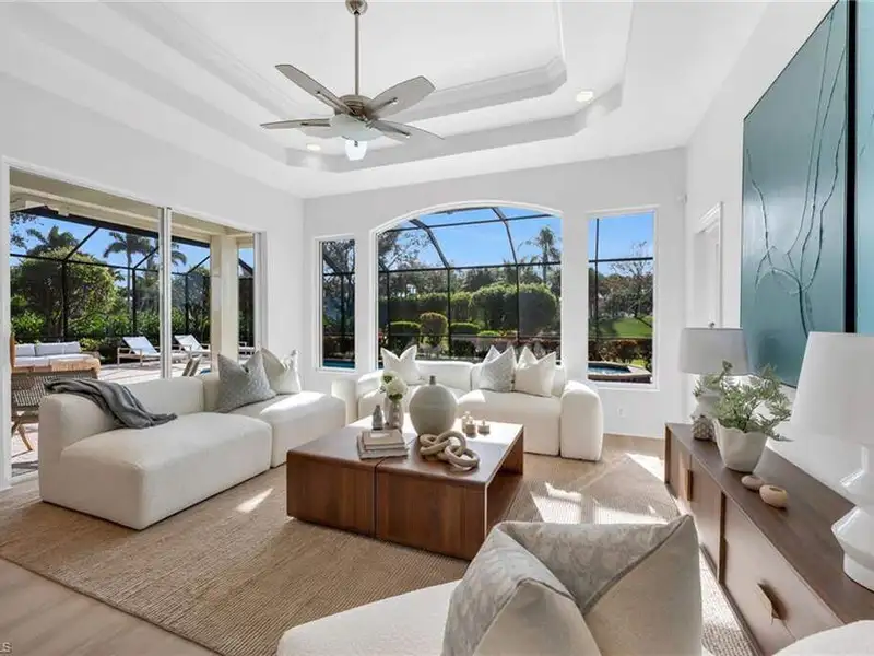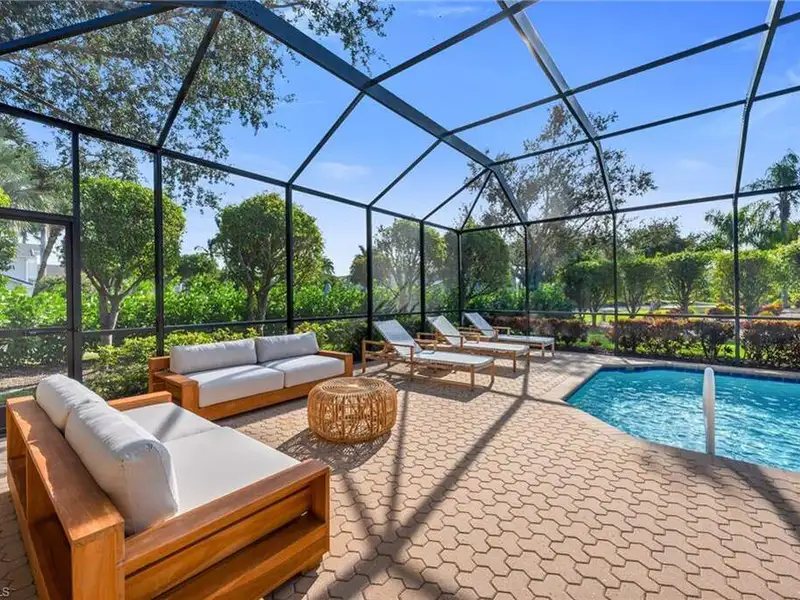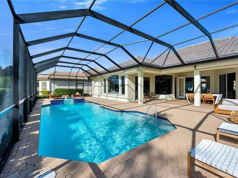 If you've been waiting for the right home in North Naples, a place that's peaceful, beautifully cared for and ready for your next chapter, you will want to see this home. The custom Arthur Rutenberg Tradewinds III blends timeless design with noteworthy updates offering comfort, privacy and easy living in one of Naples' most respected golf communities. From the moment you step inside, natural light and warm open spaces welcome you. There is a separate living room and great room, as well as a morning room with seamless corner window, all having direct access to lanai. The great room has south-facing oversize picture windows with golf course view. Kitchen has custom cabinetry, two islands, Italian marble, SS appliances, pull out pantry and remote skylight that lets in fresh air and west sunlight. The private primary suite commands the entire length of one side of the house, with oversized bath, room-size custom closet and a separate shoe closet. Primary bath is spa inspired, finished in Porcelanosa tile, French made vanities, free standing air jetted tub, LED mirrors and frameless shower. It is a soothing space that aligns with calming energy. Outdoor living area is just as impressive, with massive lanai, large pool and spa. Mature landscaping and new Calusa privacy hedge bring in Nature's tranquility. Imagine quiet evenings outside, weekend gatherings or a morning swim before golf with friends. There is even an outdoor kitchen with custom cabinetry, TEC infrared grill, separate built in burner, custom SS venting, bar sink and granite counters. Recent updates to pool equipment (including new heater and pump), screened cage, and complete pool resurfacing allow headache-free enjoyment. Significant improvements make ownership easy, including 2025 roof, new water heaters, new gutters, fresh paint exterior & interior, updated irrigation system, hurricane-rated windows and motorized shutters. A 3.5 car garage with new epoxy flooring and full attic planking round out this exceptional home. The location within the Strand also adds appeal. The private back gate entrance offers quick access. Strand amenities include 27 holes of championship golf, tennis, pickleball, bocce and lawn croquet; as well as a fitness complex, multiple dining venues and a clubhouse with a full calendar of social activities. It is one of North Naples' most desirable and inviting private clubs. If you are looking for a move in ready home with exceptional outdoor living, thoughtful improvements and a prime location near Publix, Target and Walmart, this home offers a comfortable, relaxed environment that exemplifies the Naples casual easy lifestyle.