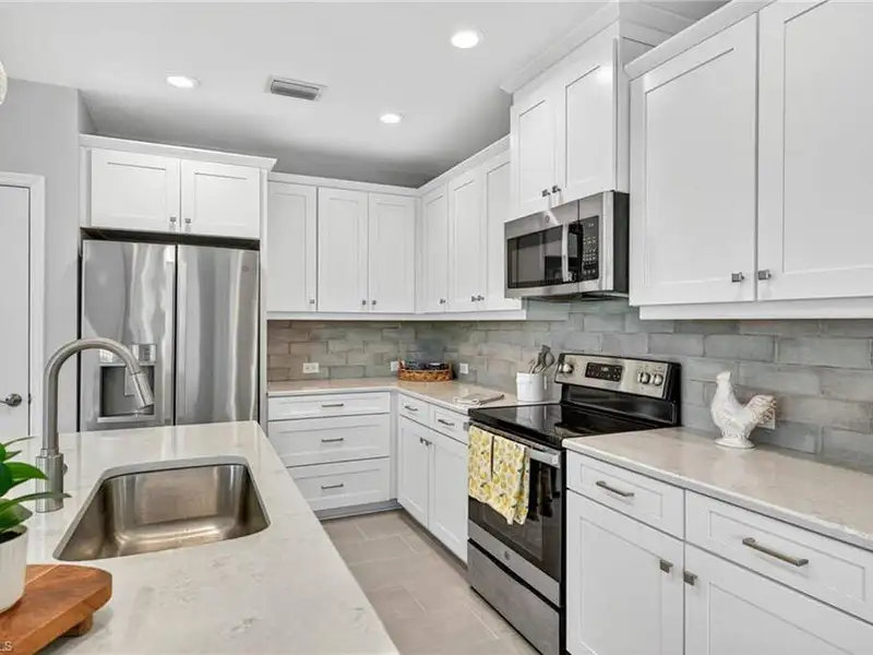 - Modern chef's kitchen with quartz countertops