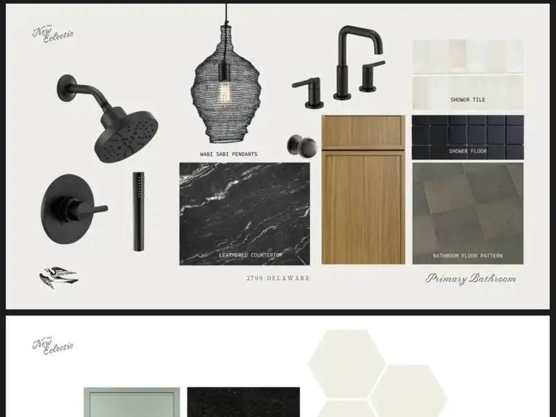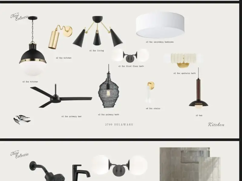 - Modern interior with sophisticated black and gold fixtures