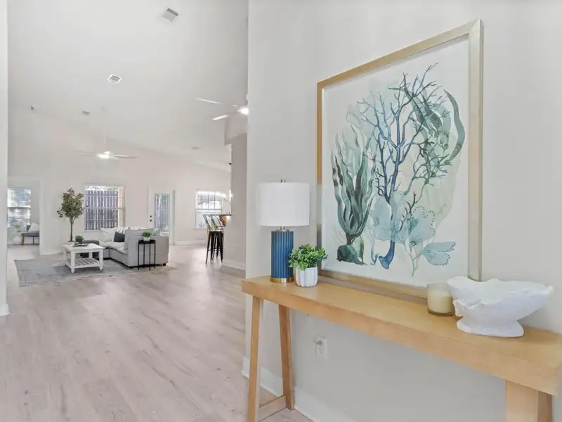 - Vaulted ceilings with open floor plan