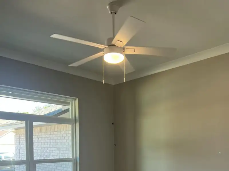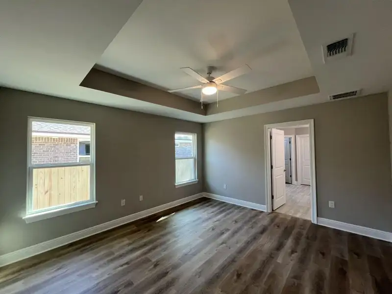- Master bedroom with tray ceiling and fan
