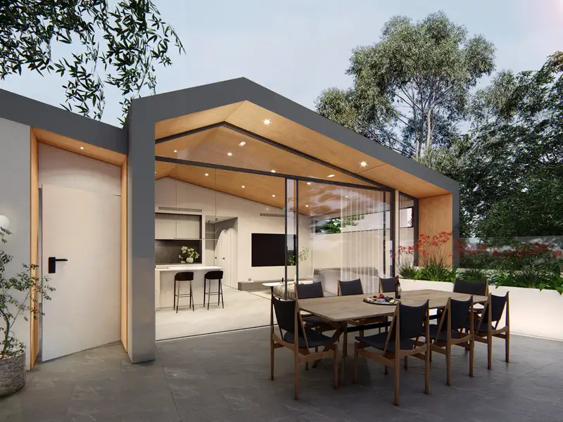 External textures comprising character brickwork, feature metal cladding, and raked timber-lined balcony ceilings create an aesthetically impressive elevation while blending sympathetically into the leafy streetscape of this established locale.