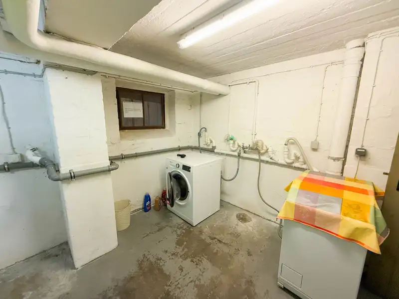In addition to the living space, the unit has 15.06 m² of its own usable space, consisting of a cellar room (9.70 m²) and an attic compartment (5.36 m²). Residents can also use communal ancillary rooms with an area of 60.99 m², including a laundry room in the basement (19.43 m²), a drying room in the attic (21.61 m²), a utility room (7.23 m²) and a boiler room (12.72 m²).