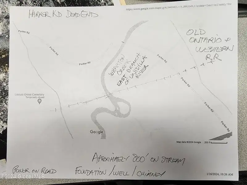 Land has 800sf of stream frontage on the Wharton creek (a tributary of the Unadilla river). These are not wetlands. Land is level, Had a bldg at one time and an old foundation, well and 2 chimneys remain. This would be great for a residential home of recreational bldg (camp?). There is an easement for a concrete RR abutment. See docs
