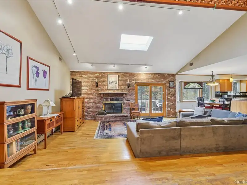 - Family room with brick fireplace and skylight