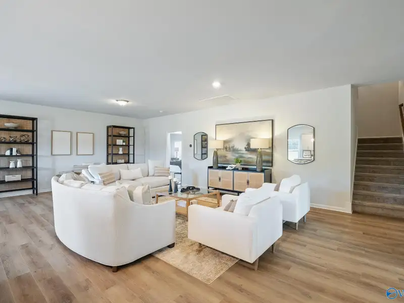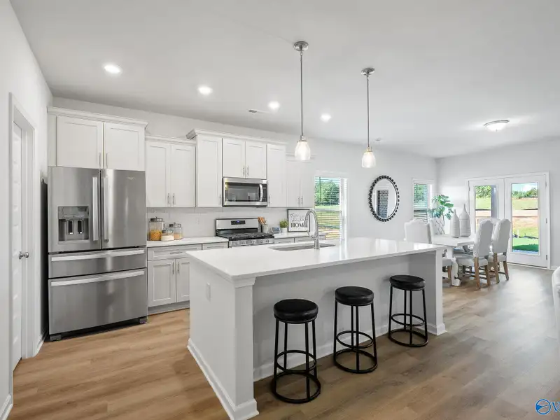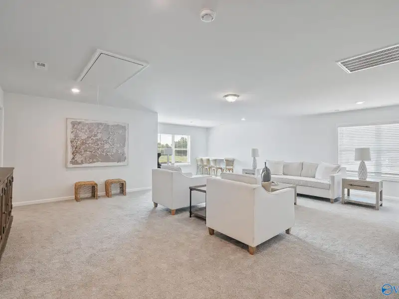 - Open concept living, dining, kitchen area