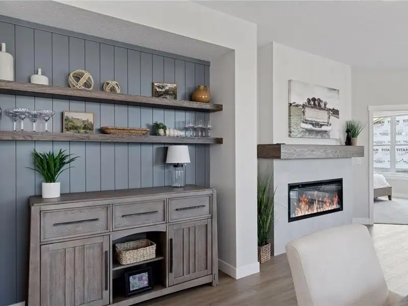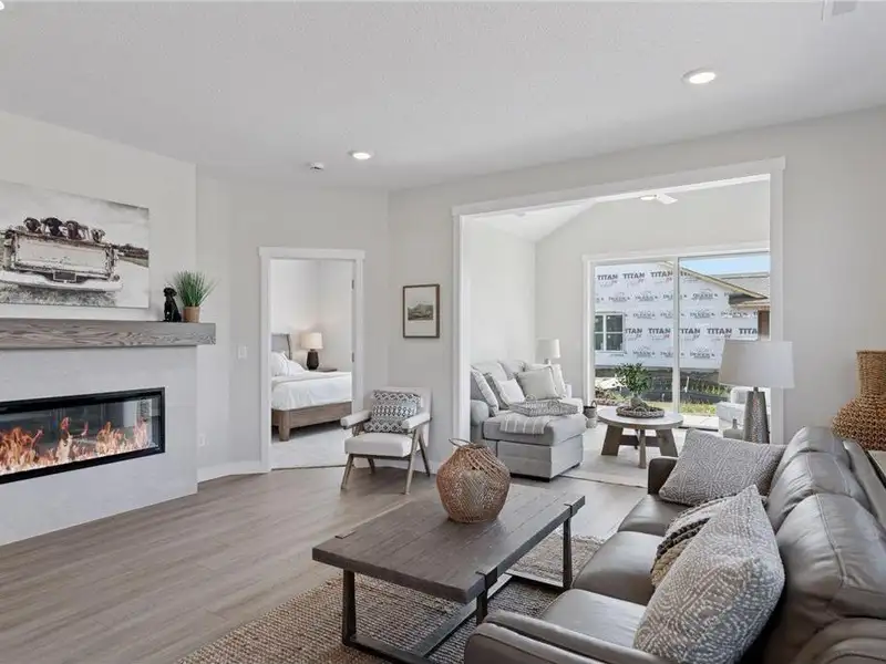 - Open-concept living with gas fireplace