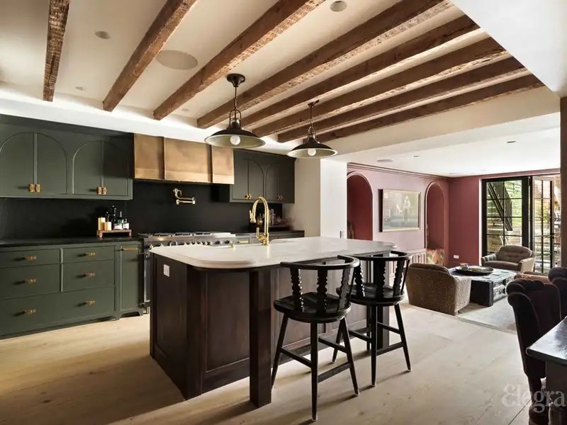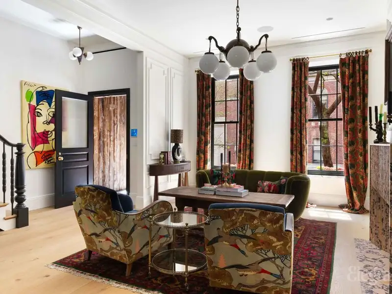 Once in a very blue moon, a townhouse comes to market that transcends being simply a house; becoming a world-class experience and asset, where design-forward living meets effortless comfort.Located on a pristine row of West Village townhouses, and acquired privately from Oscar winning actress Ellen Barkin, this townhouse has been reimagined through a multi-year, design-driven renovation by a mold-breaking husband-and-wife design duo. It is a study in bold creativity and refined comfort. Bringing their West Coast sensibility, meticulous craftsmanship, and fearless design vision to every detail? they have delivered a fully turnkey home that feels both extraordinary and livable.You are greeted by an awe inspiring parlor floor with three separate entertaining spaces that lead out to the terrace and garden beyond. Two wood burning fireplaces with richly crafted marble mantles and an inspired, custom bar stretching 11 ft, anchor the parlor floor, evoking images of the great hotel bars from around the globe.The true heart of the home brings together kitchen, dining, and media spaces in a seamless flow, spilling out to an outdoor dining and cooking area, perfect for gatherings day or night. The beautiful chef's kitchen is as functional as it is stylish, featuring a butler's pantry, dual-zone wine fridge, Sub-Zero refrigerator and freezer, a Bertazzoni 48" Heritage Series dual-fuel range with griddle, and a custom-built vented range hood that completes the room with sculptural presence.The primary suite, just one flight up from the parlor, is a stunning retreat that opens to a large private terrace and an envy-causing, walk-in dressing room that showcases a custom dresser centerpiece topped with a dramatic single slab of Breccia Capraia marble, marrying utility with striking artistry.Upstairs, you'll find two large bedrooms with en-suite bathrooms and high ceilings, next to what may be the chicest office in the Village with its own private terrace, creating a unique workspace layered with character and designed to inspire.Entertain effortlessly across multiple outdoor spaces, including a roof deck with its own bar, three terraces, an outdoor kitchen, and a lush mature garden extending over 40 feet deep?a rare oasis in Manhattan.A partially excavated cellar includes possibly the most beautiful laundry room you have ever seen, a flexible yet functional game room/wellness room, and an incredible amount of storage to hide all those things that just need to disappear.The smart home system includes floor-by-floor and "from anywhere" electronic control of HVAC, audio, security and home access.Every element reflects the philosophy of "bringing hospitality home"?curated interiors, layered textures, and an atmosphere that is both eclectic and timeless. More than just a house ? this is an experience.?a design-forward lifestyle with cinematic provenance, immersive comfort, and unparalleled attention to detail.
