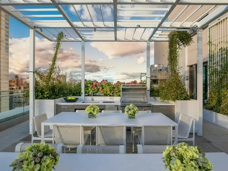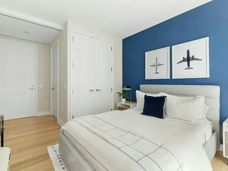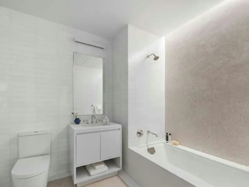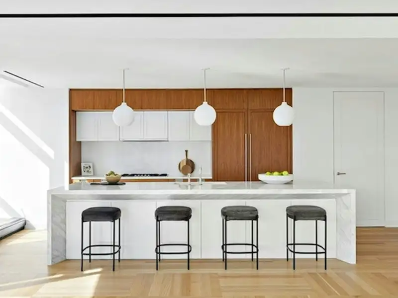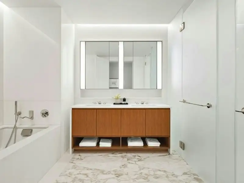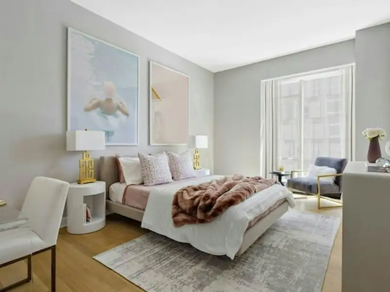 Spanning over 3,217', apartment 5B is a thoughtfully designed four-bedroom, four-and-a-half bath residence. The expansive corner great room opens to the kitchen featuring a marble island, custom walnut cabinetry, oversized pantry, and Gaggenau appliances, including a gas cooktop with a vented hood. Each of the four bedrooms is much larger than those typically found in new developments and the apartment includes five grand walk-in closets. The bathrooms boast slab and mosaic marbles in a light, serene palate and beautifully curated hardware and fixtures. There is a private laundry with a vented dryer and a four-pipe heating and cooling system with Nest controls in each room.