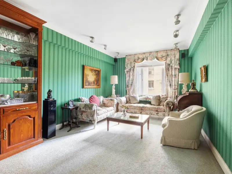 Located in the iconic Majestic on Central Park West, this elegant Classic Six offers grand proportions, timeless prewar charm, abundant light, and a gracious layout ideal for both comfortable living and entertaining. Positioned on a high floor, the apartment enjoys open northern views over West 72nd Street of the legendary Dakota. Privately accessed from semi-private elevator landing, the home welcomes you with a gracious 11.4-foot entrance gallery, leading into expansive public rooms. The original formal dining room is so generously proportioned it was thoughtfully divided to create an inviting den, while still retaining ample space for formal dining. The 23'.8x13.7 primary bedroom suite features three generous closets (including a walk-in) and an oversized windowed en-suite bath. The second bedroom is also well-scaled and enjoys wonderful southern light. The sun-flooded windowed eat-in kitchen offers two exposures and is accompanied by a staff room with a full bath - ideal for a home office, guest space, or to be incorporated into an expanded kitchen. Built in 1931, The Majestic is an Art Deco landmark renowned for its white-glove service and attentive staff, including doormen, hallmen, concierge, porters, and elevator attendants. Exceptional amenities include a fitness center, landscaped roof terrace with solarium, bike room, children's playroom, and private storage (subject to availability). Ideally situated across from Central Park and moments from Lincoln Center, Columbus Circle, and the city's premier cultural, dining, and retail destinations-with convenient access to subways and buses-The Majestic offers an unparalleled standard of service, privacy, and security.
