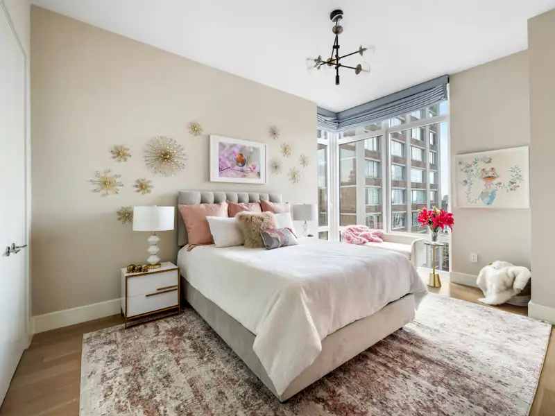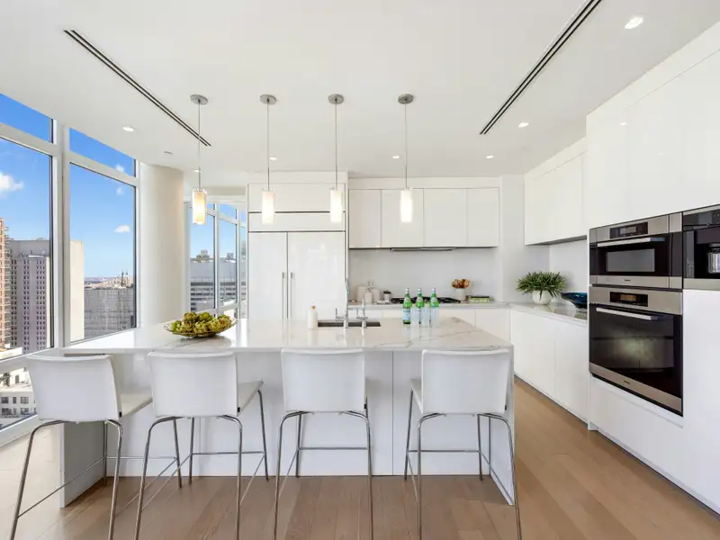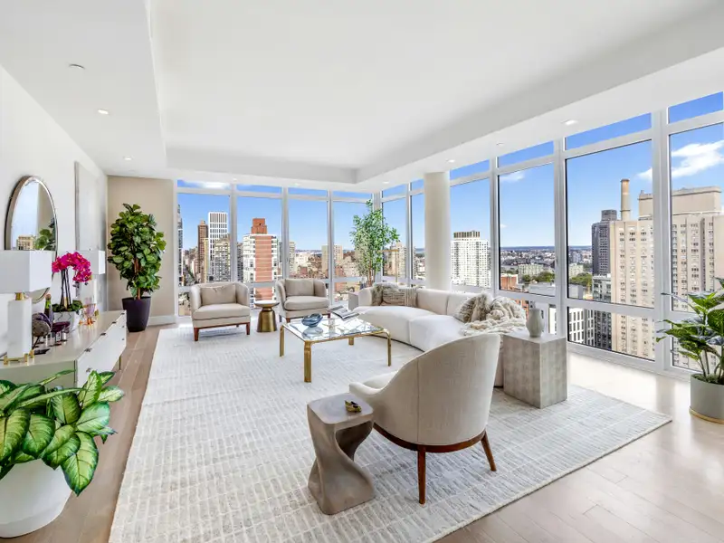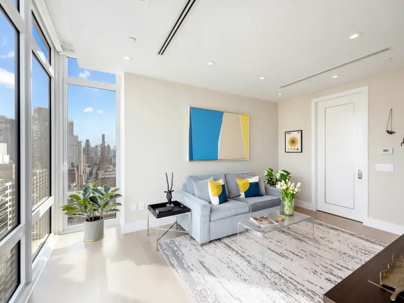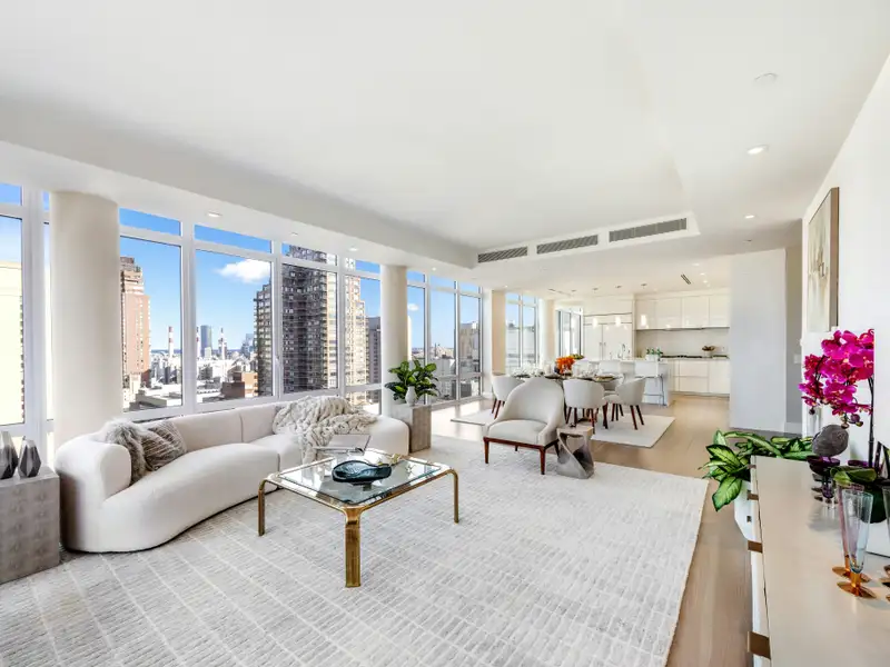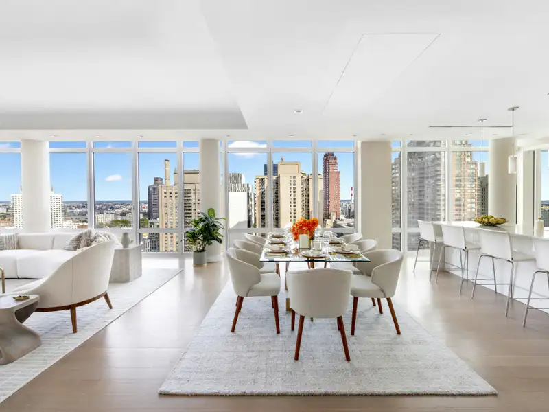 From the private elevator landing, one enters a dramatic expanse where 10-foot ceilings and floor-to-ceiling glass frame open city views in every direction. Bathed in natural light from sunrise to sunset, the residence offers sweeping panoramas of Manhattan's skyline, a dynamic backdrop for both refined entertaining and serene daily living.